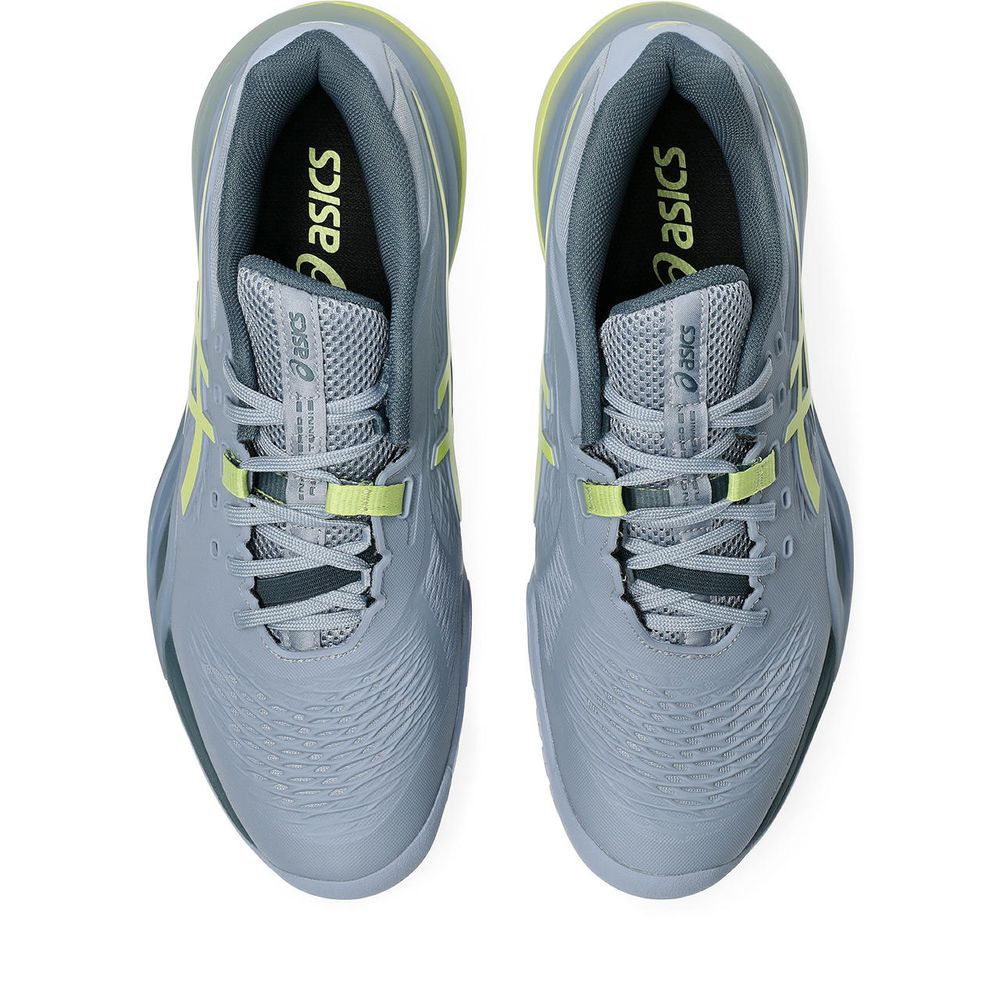 ベースラインでのラリーを得意とするプレーヤーに向けた、安定性に優れたフラッグシップモデル。GEL-RESOLUTION X WIDE 幅広の足にも対応するWIDEモデル。横方向のダイナミックな動きに対応する安定性を追求したオールコート用テニスシューズ。ベースラインからゲームをコントロールすることを好むプレーヤーのために、高度な安定性と快適性を提供します。ミッドソールに搭載されている樹脂製パーツの"DYNAWALL"は、横方向への動きの際の安定性を高めるためにかかと部から前足部まで伸ばし、小ゆび部分に窓を設けることで快適性を向上させ、横方向への安定性、フットワークをサポート。また、ミッドソールのかかと部にテニスシューズには初採用となるFF BLAST PLUS ECOを採用。前足部はFLYTEFOAMを採用し、異なる素材の2ピース構造にすることで安定性を維持しつつ快適性と着地時のクッション性をアップデートしました。シューレースと連動したDYNALACINGは、強度の高い動きの時にアッパーと足のフィット感を向上させます。また、内側だけ高くなったアンクルカットは、横方向に踏ん張った時に可動域以上の足首のねじれを抑えます。