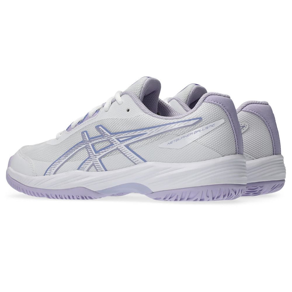 GEL-NETBURNER BALLISTIC 4 GSは、ジュニア向けに設計されたシューズで、コート上での柔軟性と安定性に優れた一足です。メッシュアッパーを人工皮革で補強し、優れたサポート性を発揮しつつ、ミッドソールの前足部にGELを搭載することでクッション性をアップさせたシューズです。さらに、キッズ専用ラストにより、ジュニアプレーヤーの足に優れたフィット感を提供します。