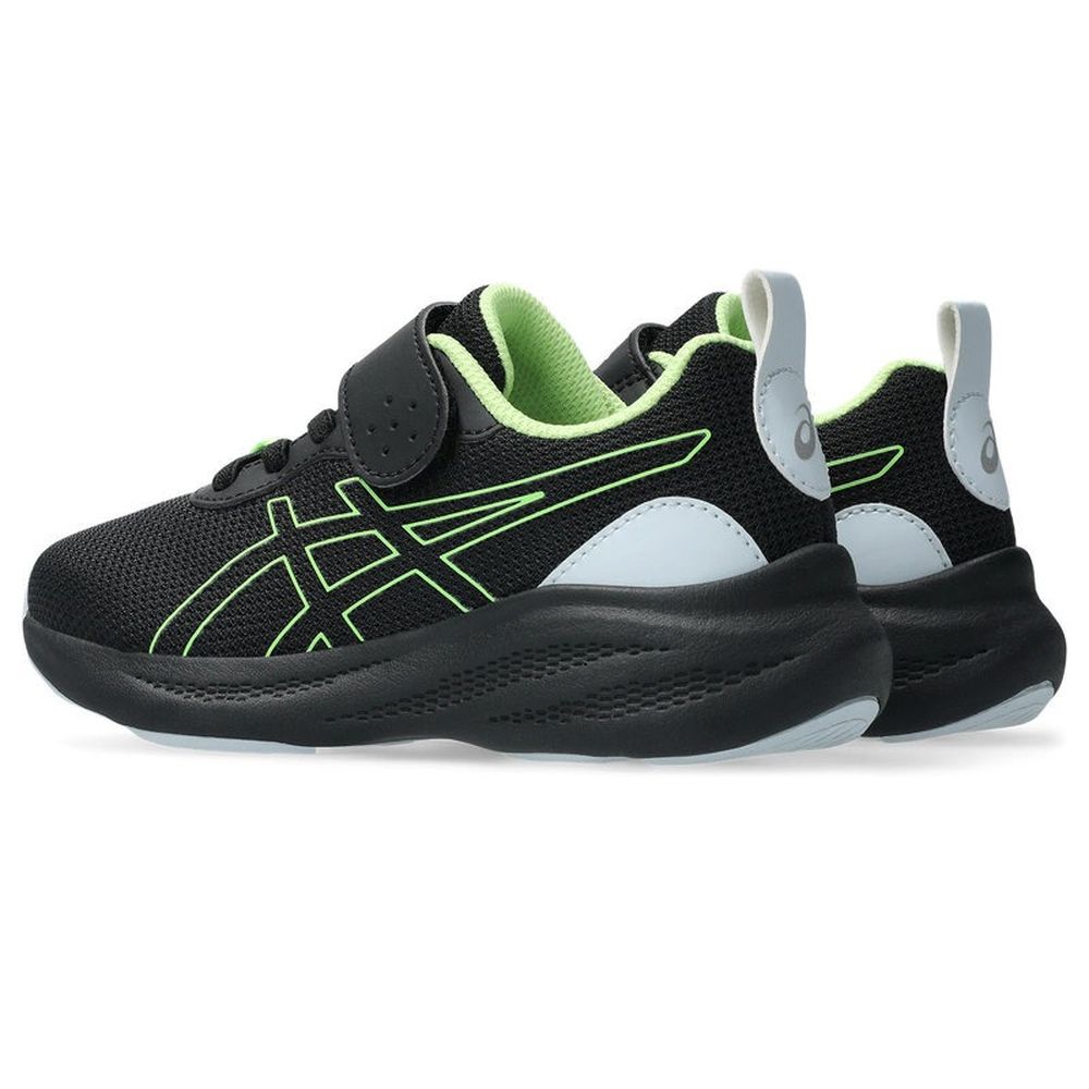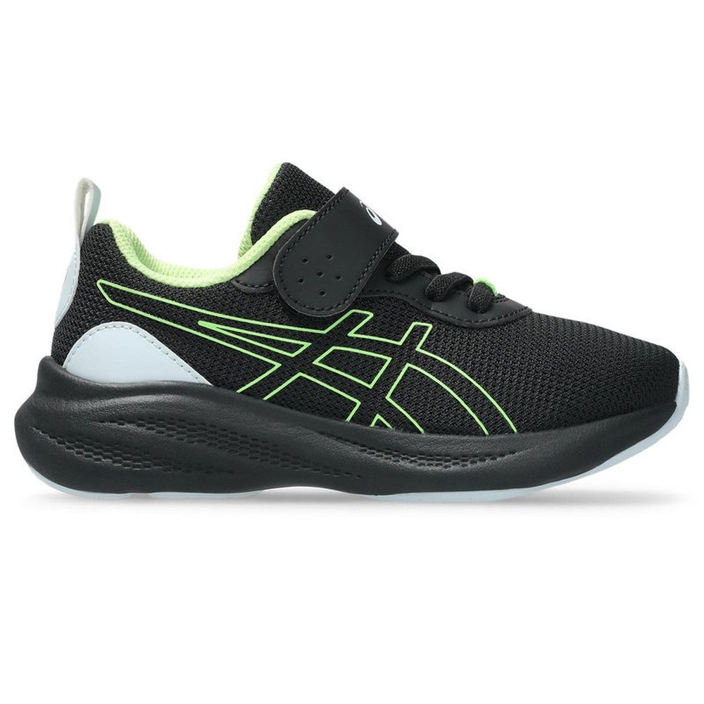 ●シンプルさと動きやすさを兼ね備えた、通気性と耐久性に配慮したゴムひも+ベルトのシューズ ●アシックススポーツ工学研究所のデータをもとに作製したキッズ専用ラストを採用、シンプルさと履き心地にこだわったクッションモデル。 アウターソールはラバーの面積を大きくすることで耐久性に配慮。 ミッドソールにはクッション性の高いE.V.A.を採用しています。 シューズの左右を区別しやすいよう、インナーソールのかかと部にイラストをプリント。 アッパーは通気性のよいラッセルメッシュ。 脱ぎ履きしやすい靴ひも風のゴムひもタイプで、一本ベルトでフィット感の調節も可能。 成長段階の子どものかかとを固定し支える樹脂製ヒールカウンターを搭載。 お出かけが楽しみになるカラーバリエーションで、通学などの普段使いにも適しています。