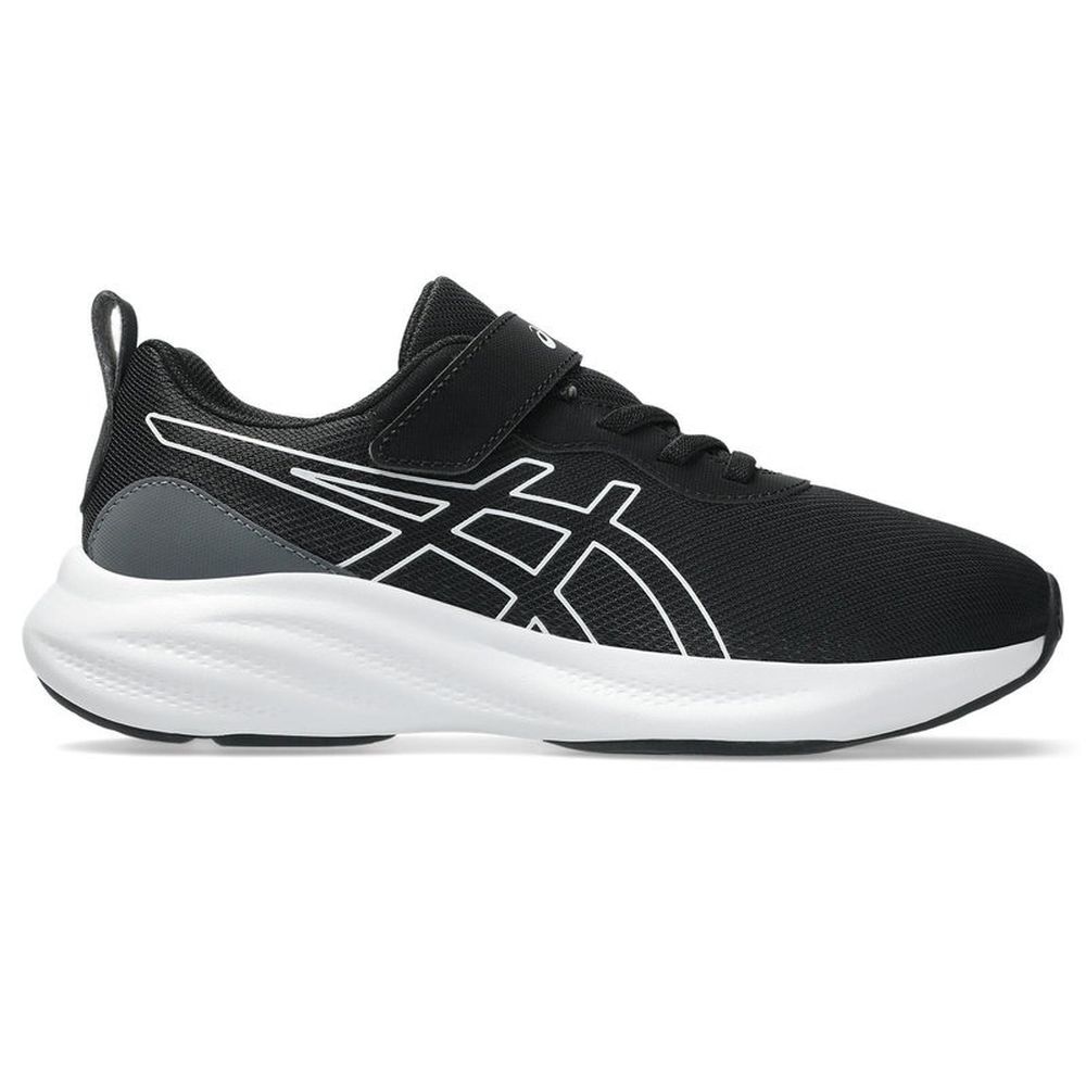 ●シンプルさと動きやすさを兼ね備えた、通気性と耐久性に配慮したゴムひも+ベルトのシューズ ●アシックススポーツ工学研究所のデータをもとに作製したキッズ専用ラストを採用、シンプルさと履き心地にこだわったクッションモデル。 アウターソールはラバーの面積を大きくすることで耐久性に配慮。 ミッドソールにはクッション性の高いE.V.A.を採用。ラバーには貫通孔を配置し、屈曲性に配慮しています。 アッパーは通気性のよいラッセルメッシュ。 脱ぎ履きしやすい靴ひも風のゴムひもタイプで、一本ベルトでフィット感の調節も可能。 成長段階の子どものかかとを固定し支える樹脂製ヒールカウンターを搭載。 かかと部には反射プリントを配置。 パーツ数を少なくしたシンプルなデザインで、お出かけや通学などの普段使いにも適した一足です。