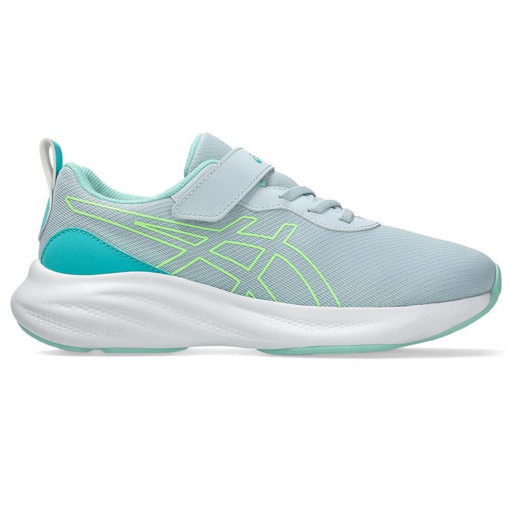 ●シンプルさと動きやすさを兼ね備えた、通気性と耐久性に配慮したゴムひも+ベルトのシューズ ●アシックススポーツ工学研究所のデータをもとに作製したキッズ専用ラストを採用、シンプルさと履き心地にこだわったクッションモデル。 アウターソールはラバーの面積を大きくすることで耐久性に配慮。 ミッドソールにはクッション性の高いE.V.A.を採用。ラバーには貫通孔を配置し、屈曲性に配慮しています。 アッパーは通気性のよいラッセルメッシュ。 脱ぎ履きしやすい靴ひも風のゴムひもタイプで、一本ベルトでフィット感の調節も可能。 成長段階の子どものかかとを固定し支える樹脂製ヒールカウンターを搭載。 かかと部には反射プリントを配置。 パーツ数を少なくしたシンプルなデザインで、お出かけや通学などの普段使いにも適した一足です。