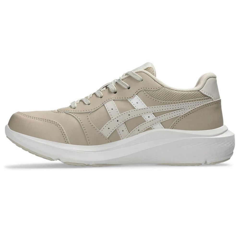 ●基本機能を搭載、バランスに優れたウォーキングシューズのエントリーモデル ●足への負担が少なく、やわらかな履き心地が特徴のゲルファンウォーカーシリーズ。 歩行時の安定性と軽量性、クッション性のバランスに優れた、ウォーキングエントリーモデルです。 歩行時の左右のブレを抑え、安定性を高める「グルーヴチェンジ」構造のソールを採用。 ソールのかかと部には優れたクッション性と軽量性を兼ね備えたfuzeGELを搭載しています。 アウターソールのかかと部には、耐摩耗性に優れたAHARPLUSラバーを採用。 アッパーはやわらかく質感のよい人工皮革を使用し、足当たりのよさを追求。 広で足入れもゆったりしています。シンプルなデザインで、さまざまな年代で履きこなせる1足です。