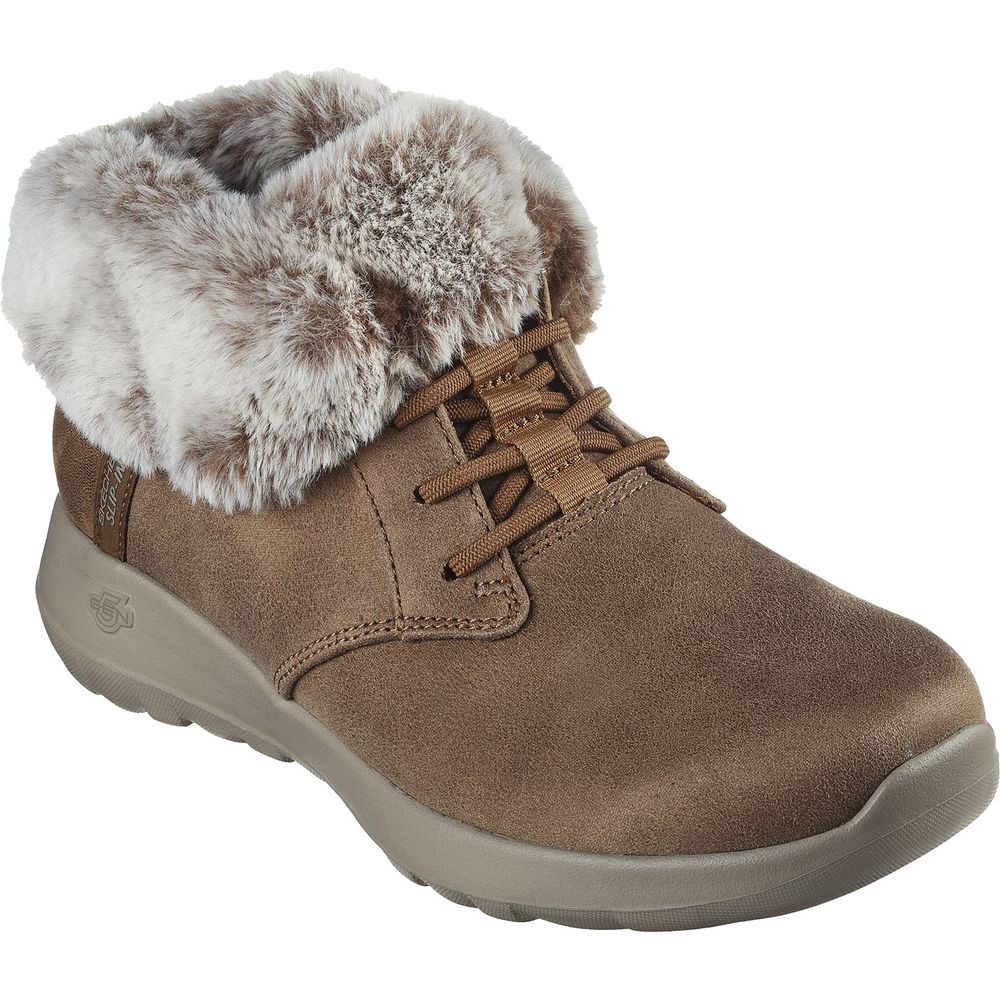 仕様:Perform-Tex(人工皮革)のアッパーにストレッチレース、フェイクファーのライニングと縁取り、フレキシブルでトラクション性の高いアウトソール、ヒールの高さは約3.8センチメートル(1 1/2インチ)、Skechersのロゴディテール