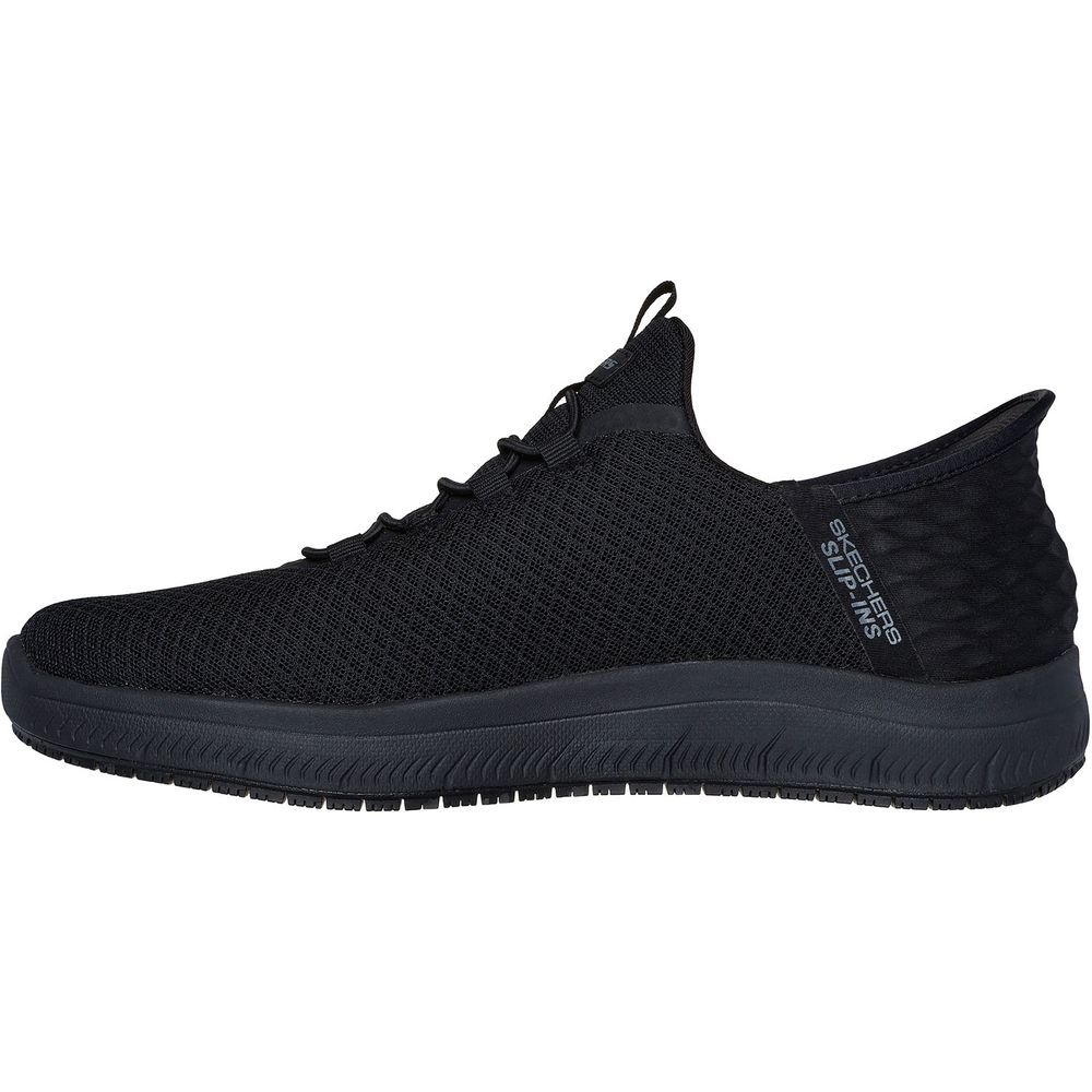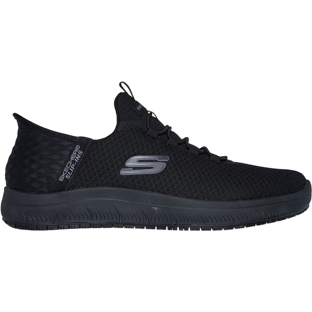 『雨の日でも滑りにくい』防滑アウトソールSkechers Hands Free Slip-ins Work :Summits-Colsin(スケッチャーズ ハンズフリー スリップインズ ワーク:サミッツ-コルシン)を履けば、スリップオンの便利さで防滑の安全性を実感できます。このスリップオン ワークスタイルは、ユニークなSkechers Slip-ins(スケッチャーズ スリップインズ)形状のヒールパネルを配したニットメッシュと合成素材のアッパー、独自のHeel Pillow(ヒールピロー)の防滑性アウトソール、Skechers Air-Cooled Memory Foam(スケッチャーズ エアクールド メモリーフォーム)のクッション性のある快適なインソールが特長です。