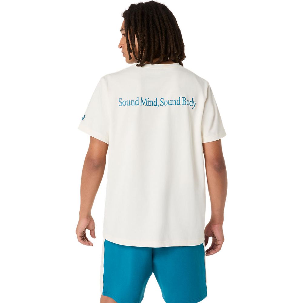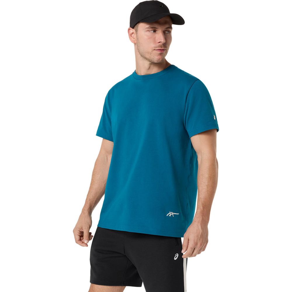 ・ヘビーウエイトタイプのコットンリッチ混紡素材・ナチュラルな風合いと機能性を融合し汗による不快感を軽減・背面にはブランドスローガンを採用したグラフィックTシャツ・スタンダードフィット・左袖にASICS Spiralロゴ刺?/裾にアシックスストライプの刺?を採用