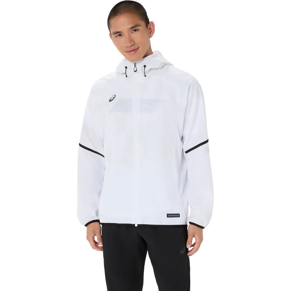 ・熱を感知するセンサーがある背中部に通気性に優れたメッシュ素材を採用し熱気やムレを排出してCOOLINGを追求・先進の3Dフィットテクノロジーにより自由な動きを追求・優れたUVケア機能とはっ水性を追求した二重織素材を採用・二重織によるドライな肌離れ・グラフィックコンセプトにASICS JAPONISMを採用 ・ひとつのデザインパターンから複数の型取りによって作成された世界で唯一のアイテム・フード部には調整可能なドローコードを採用・ウーブンラベルをデザインのアクセントに・このウエアの主素材の少なくとも50%はリサイクル素材を使用しており、廃棄物や二酸化炭素の排出の削減に貢献・フード部分にベンチレーションを採用