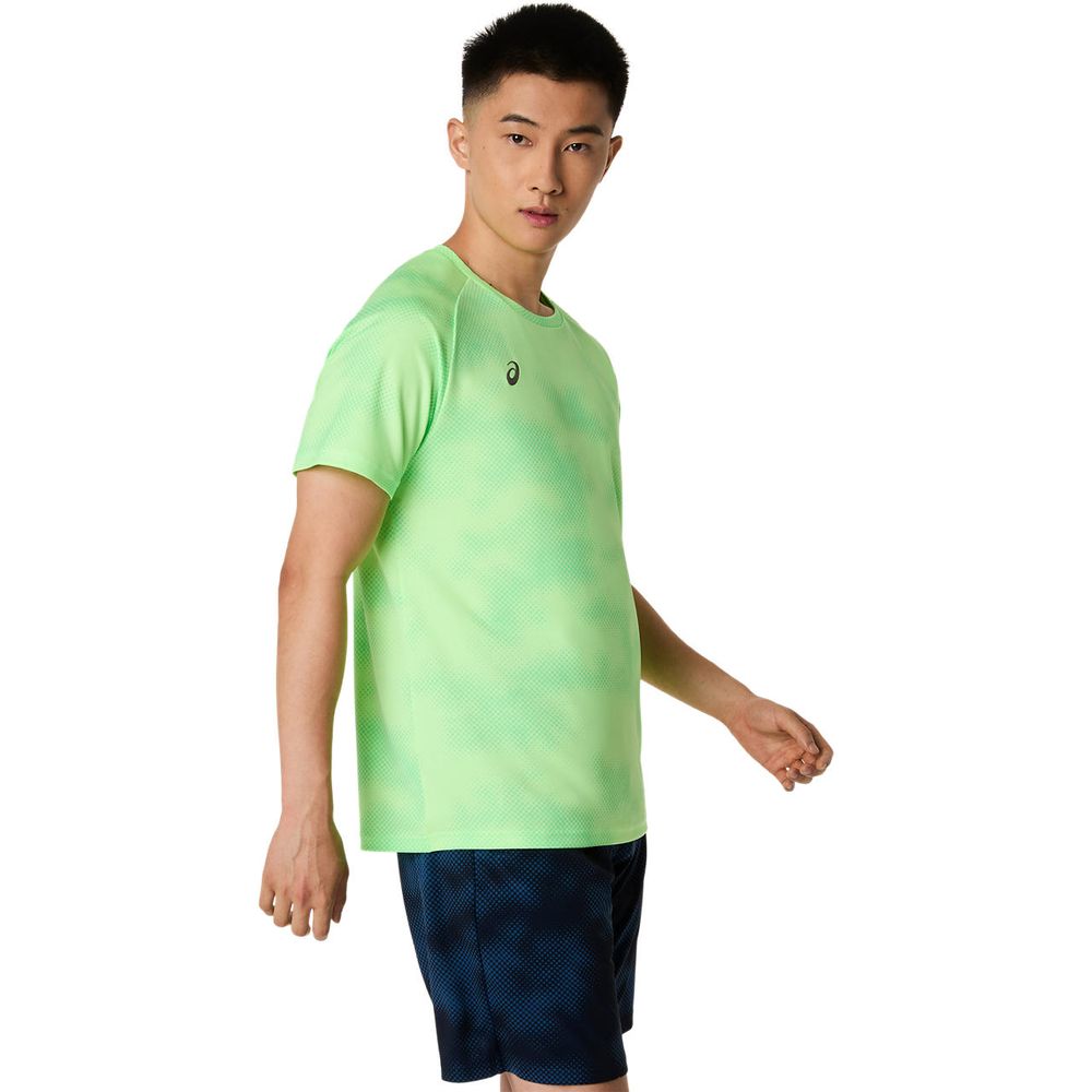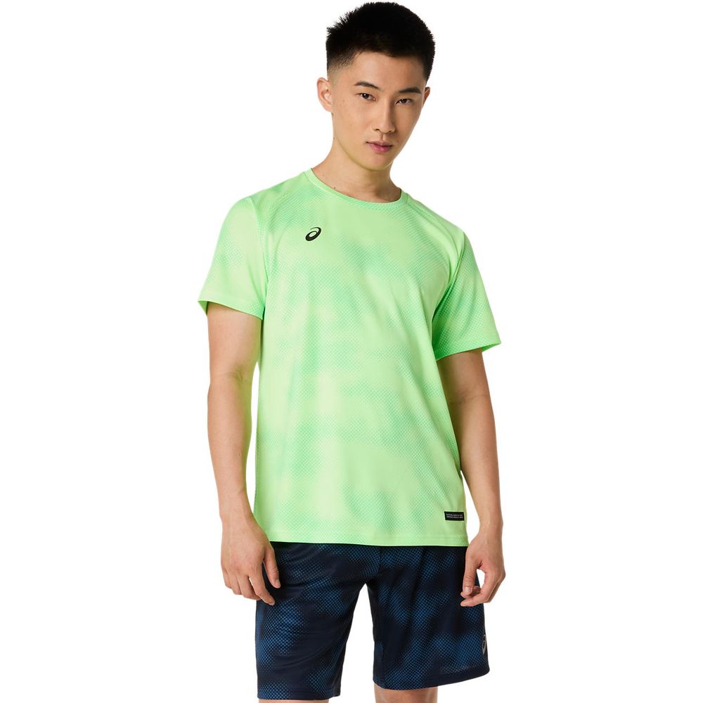 ・ASICS JAPONISMコンセプトの昇華グラフィック採用・ひとつのデザインパターンから複数の型取りによって作成された世界で唯一のアイテム・吸汗速乾性を追求したポリエステルニット素材を採用・ウーブンラベルをデザインのアクセントに