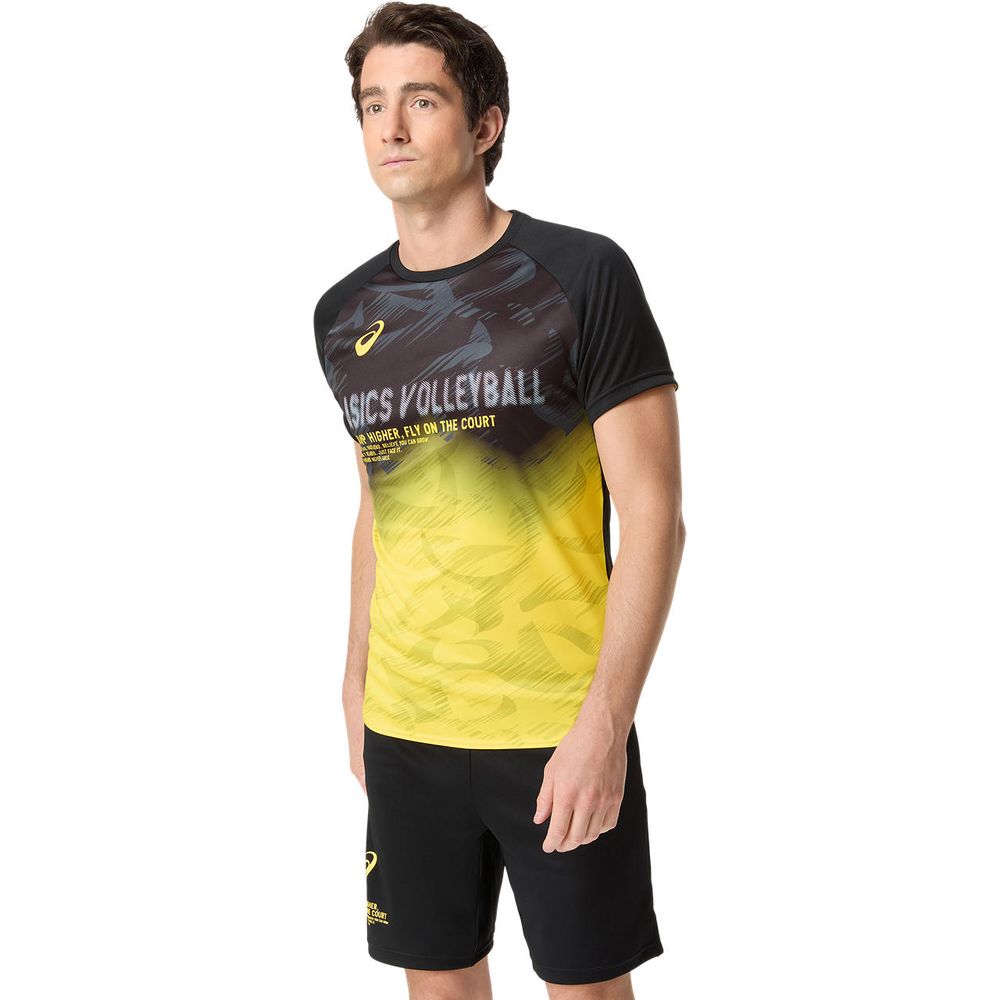 ●ACTIMOTION(アスリートの動きやすさを追求したアシックス独自のテクノロジー)を採用した半袖シャツ。シーズングラフィックを前面にプリント。