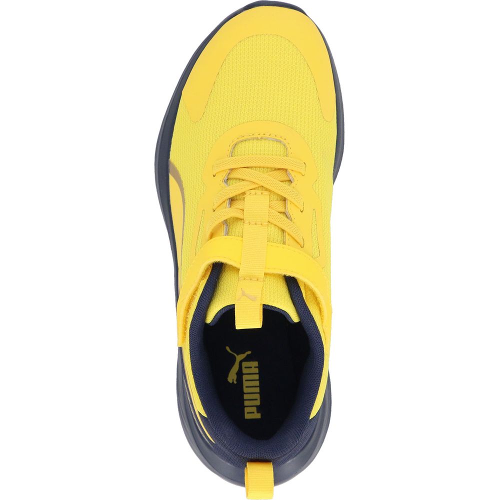 キッズスピードモンスターV5スニーカーが登場。サイドのプーマフォームストリップを囲むラインが引き立つデザインです。かかとのPUMAロゴはスピード感がイメージできるデザインにアレンジをプラスしました。