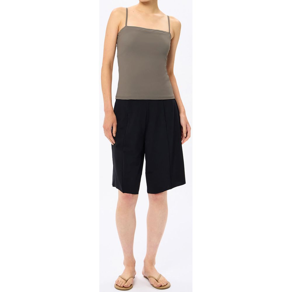 非日常でととのえるこころの健康をテーマに、大人のスイムウエアを提案する「Speedo breath(スピード・ブレス)」。インナー付きのレディースショーツです。GRS認証のすてられるべき廃棄物を100%使用したナイロン糸「RECO NYLON(レコ・ナイロン)」を使用したリサイクル素材「Sensitive Reco (センシティブ レコ )」を採用。縦にも横にも快適に伸びる4wayストレッチ性。UVケア(UPF15-30、紫外線カット率85%以上)機能付きです。ややハイウエストのAラインシルエットのためすらっとした脚長効果が期待できます。やや長めのひざ上着丈で露出を気にせず着用いただけます。安心のボックスタイプのインナー付。トップスを選ばない上品でシンプルなデザインです。