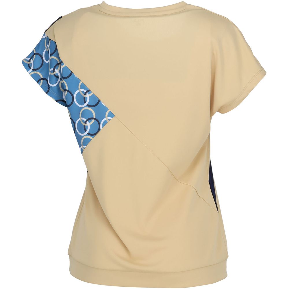 FILAテニスアーカイブからのインスピレーションのプリントデザインを大胆に配しながらも洗練さえたエレガントなゲームシャツ。身体の動きに合わせて斜めに走る切り替えが躍動感を感じさせます。
