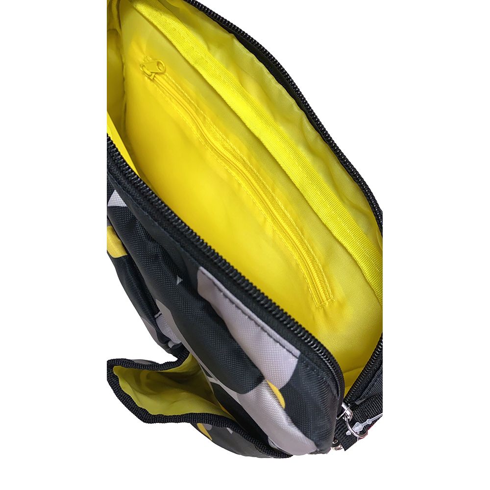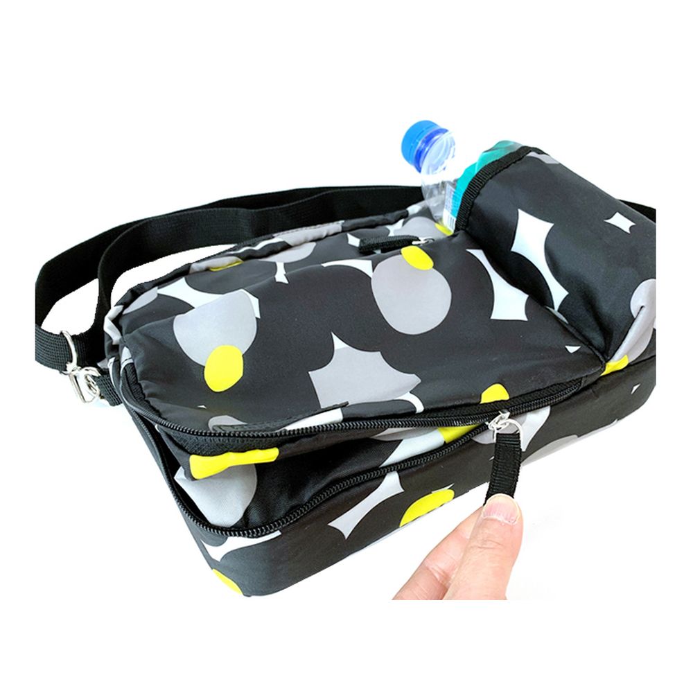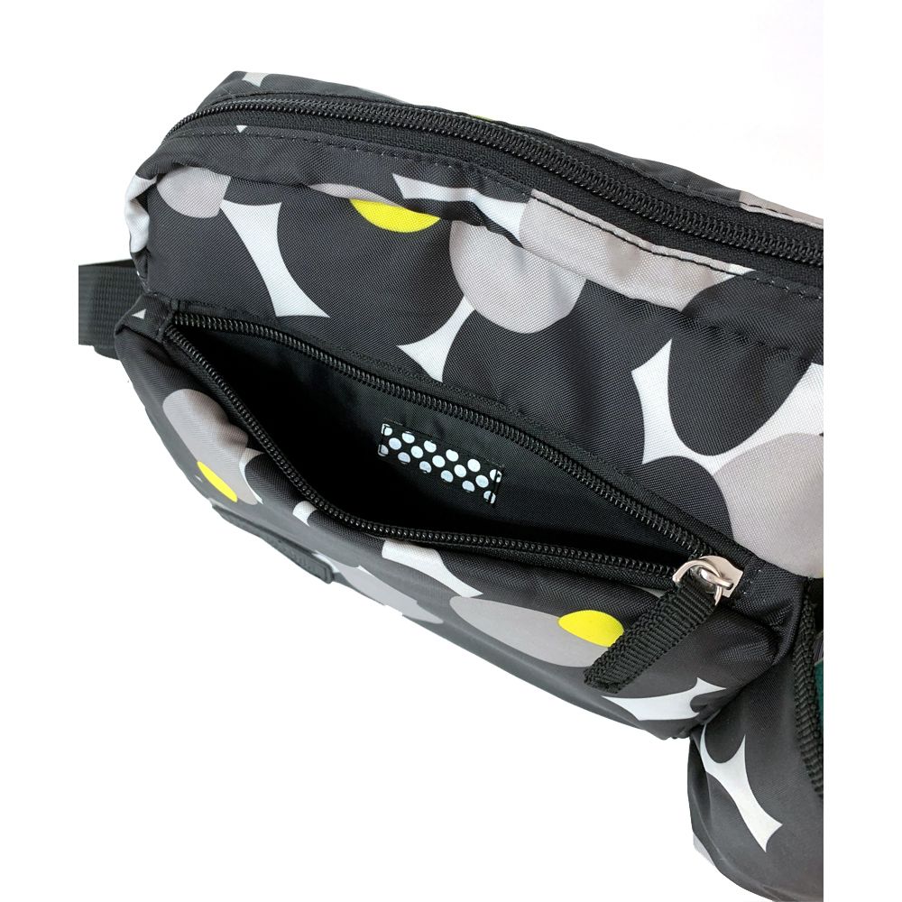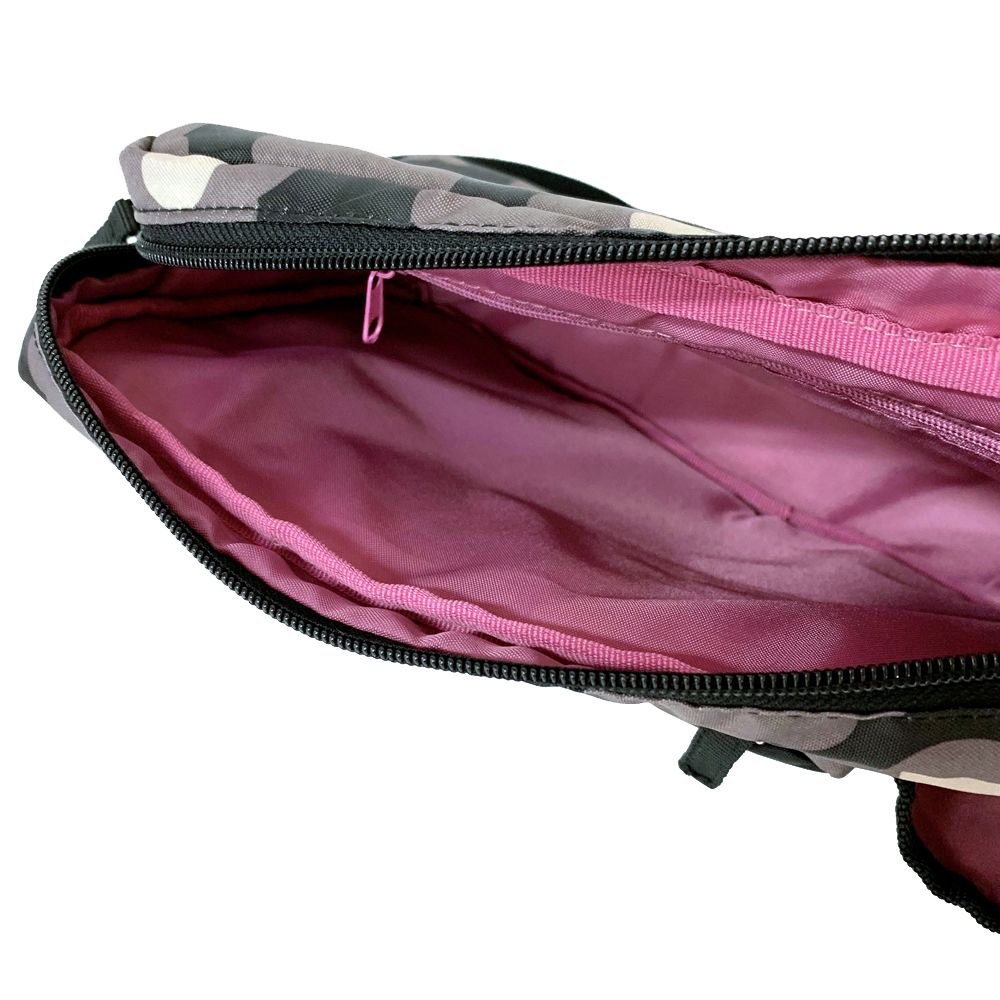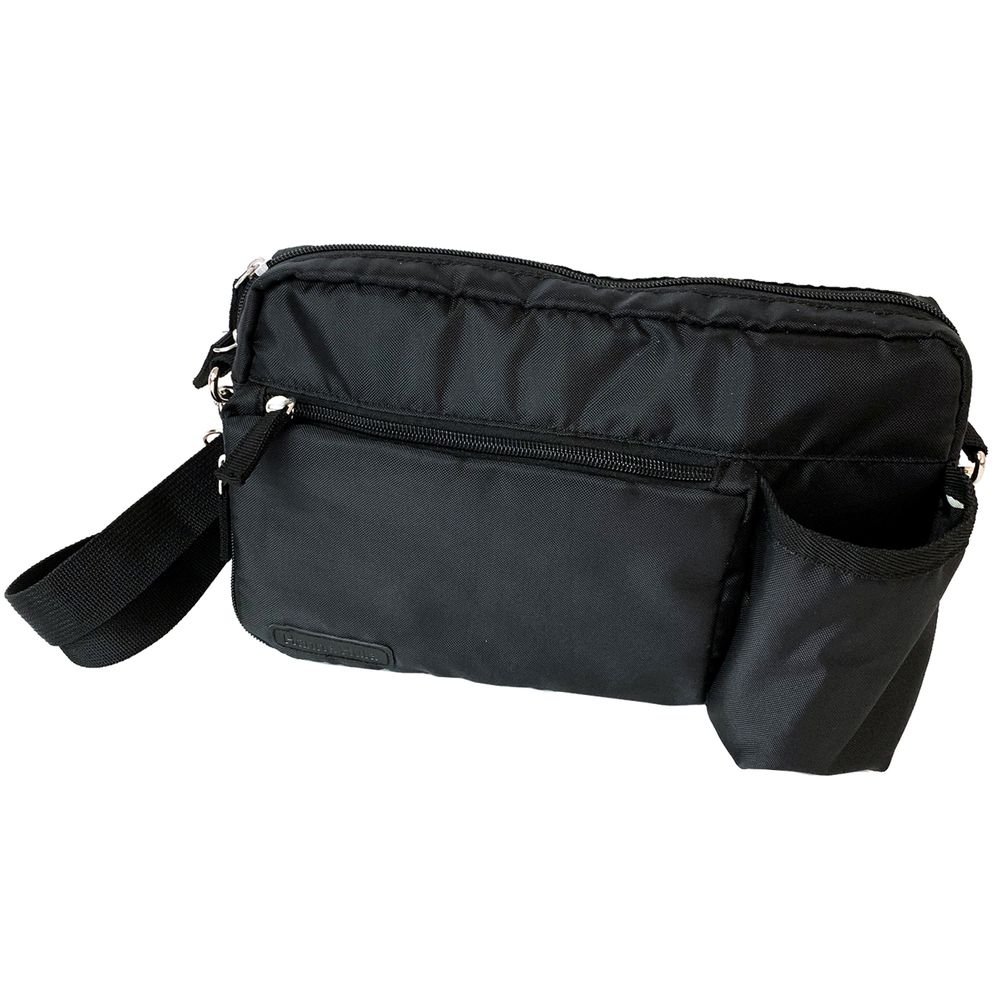 前面ポケットは下部ファスナーを開けると、片方のマチが6cm広がり収納スペースがより大きくなります。前面ポケットには、消臭抗菌効果のデオドラントネーム(R)付き。ボトルホルダーには500mlペットボトルが入ります。内側にはファスナーポケット付き。撥水加工済み。ショルダー紐付き(取り外し・長さ調節可能)
