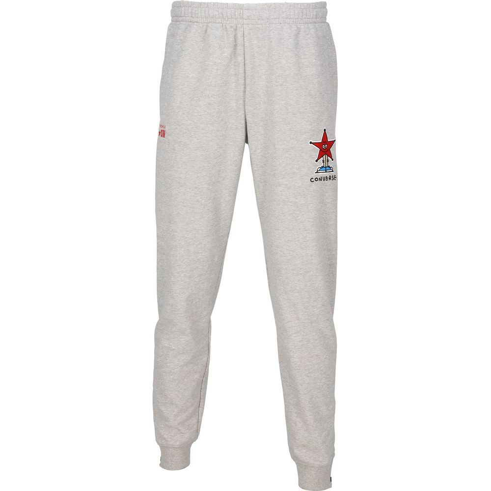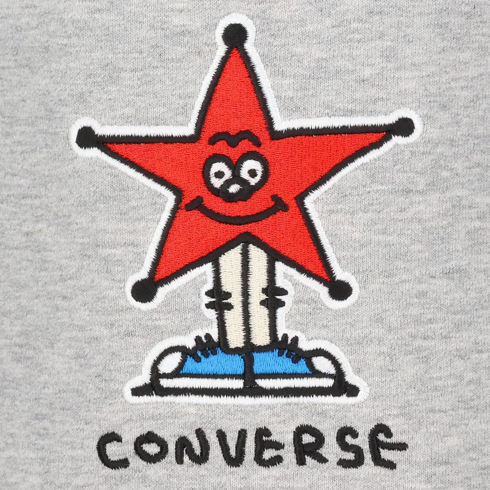 コンバースのスウェットパンツ。Yutaka Kobayashiさんの星のイラストを採用。裏地はタオル地のように柔らかい、頑丈で汗を吸収しやすい素材を使用。裾ファスナー仕様。