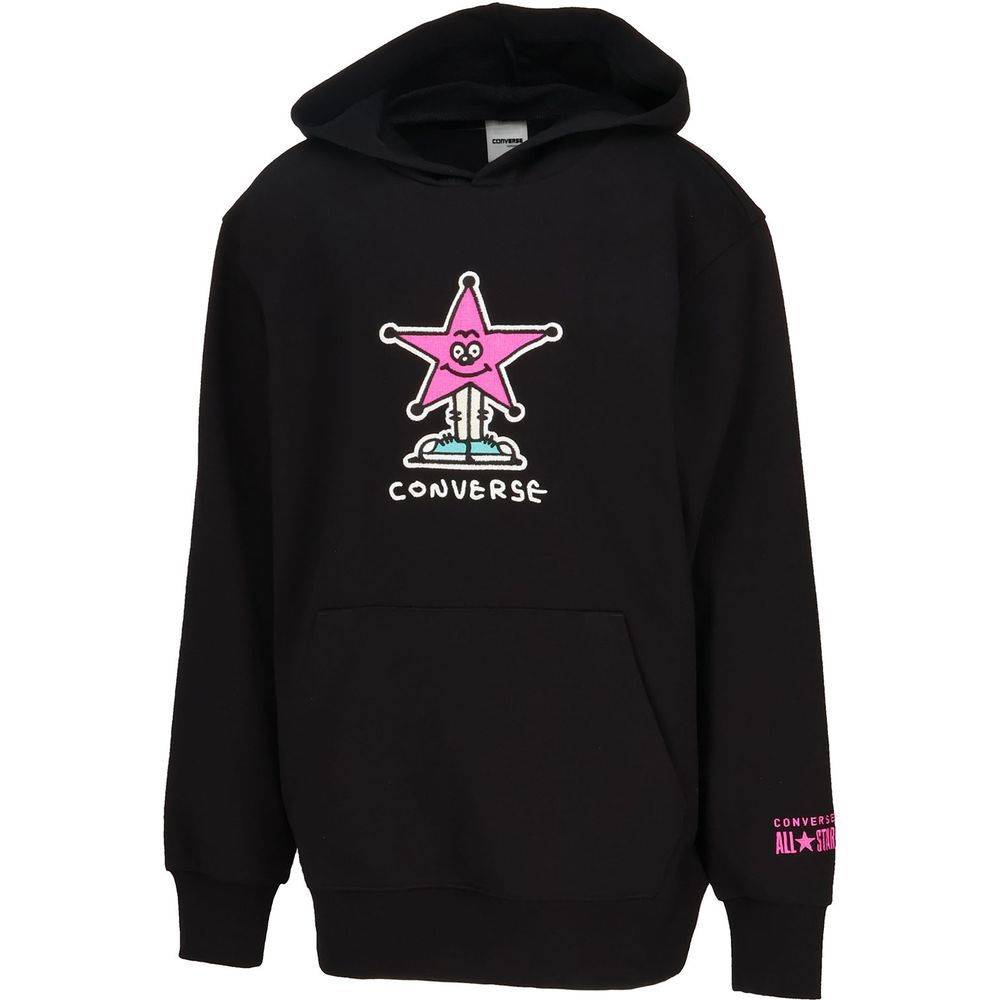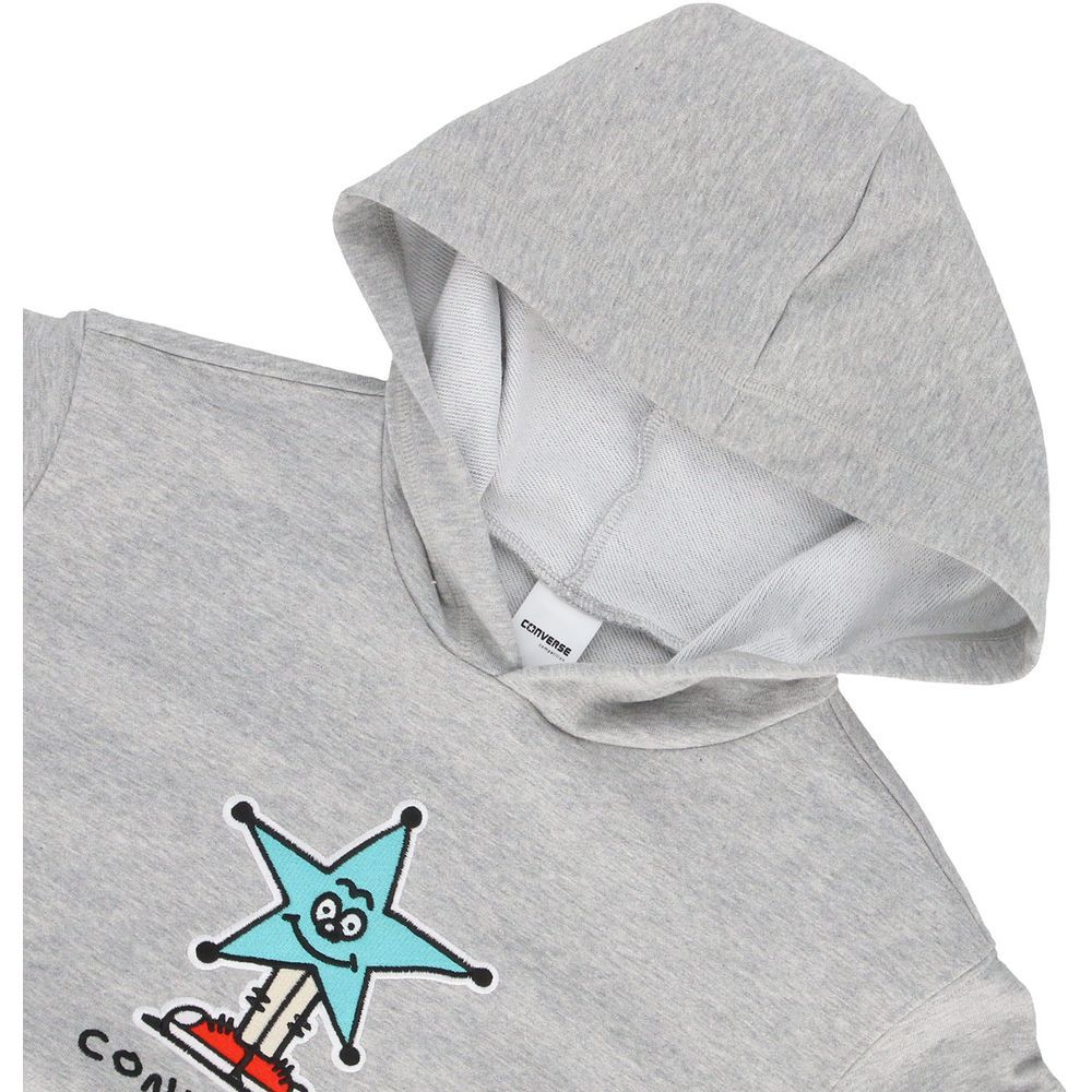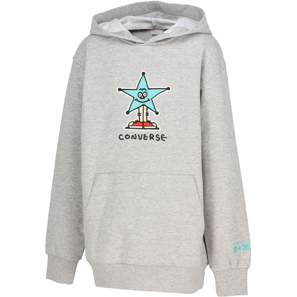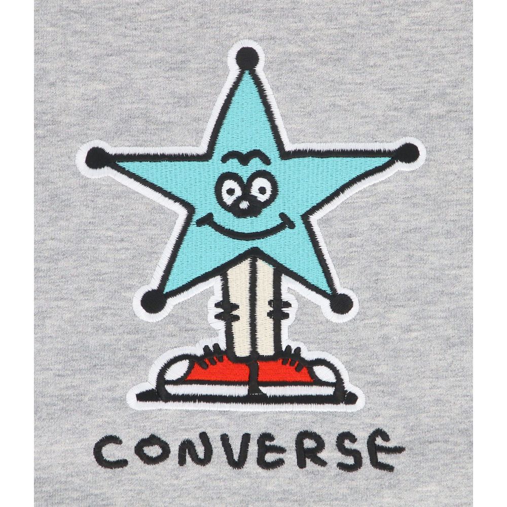 コンバースのジュニアスウェットパーカ―。Yutaka Kobayashiさんの星のイラストを採用。裏地はタオル地のように柔らかい、頑丈で汗を吸収しやすい素材を使用。