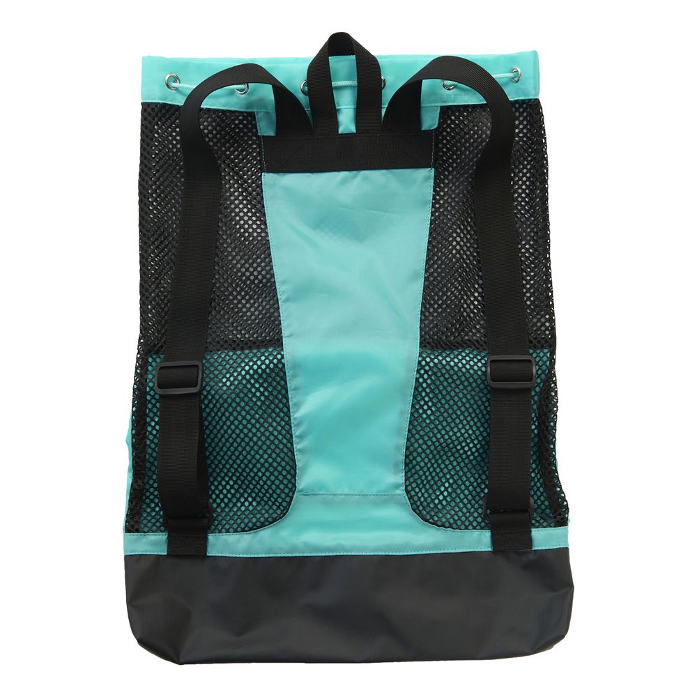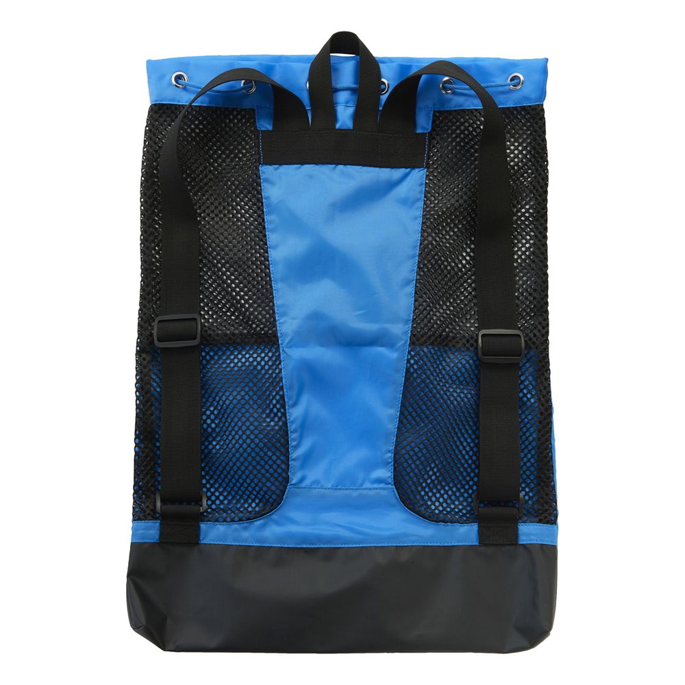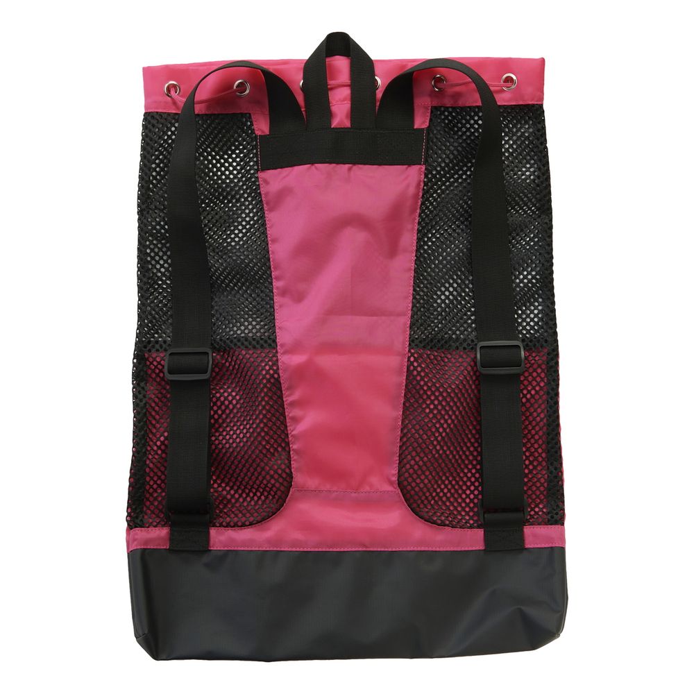 トレーニングツールやジャージなどを運ぶのに適したメッシュ素材のバックパック。ビート板やフィンなどの練習グッズはもちろん、試合会場での移動にも適しています。前面にはゴーグルやIDカードなど小さいものを収納できるポケット付き。底面はプルーフ素材になっており、プールサイドなどに置いても中が濡れにくくなっています。練習から試合まで1つ持っていると便利なバックパックです。
