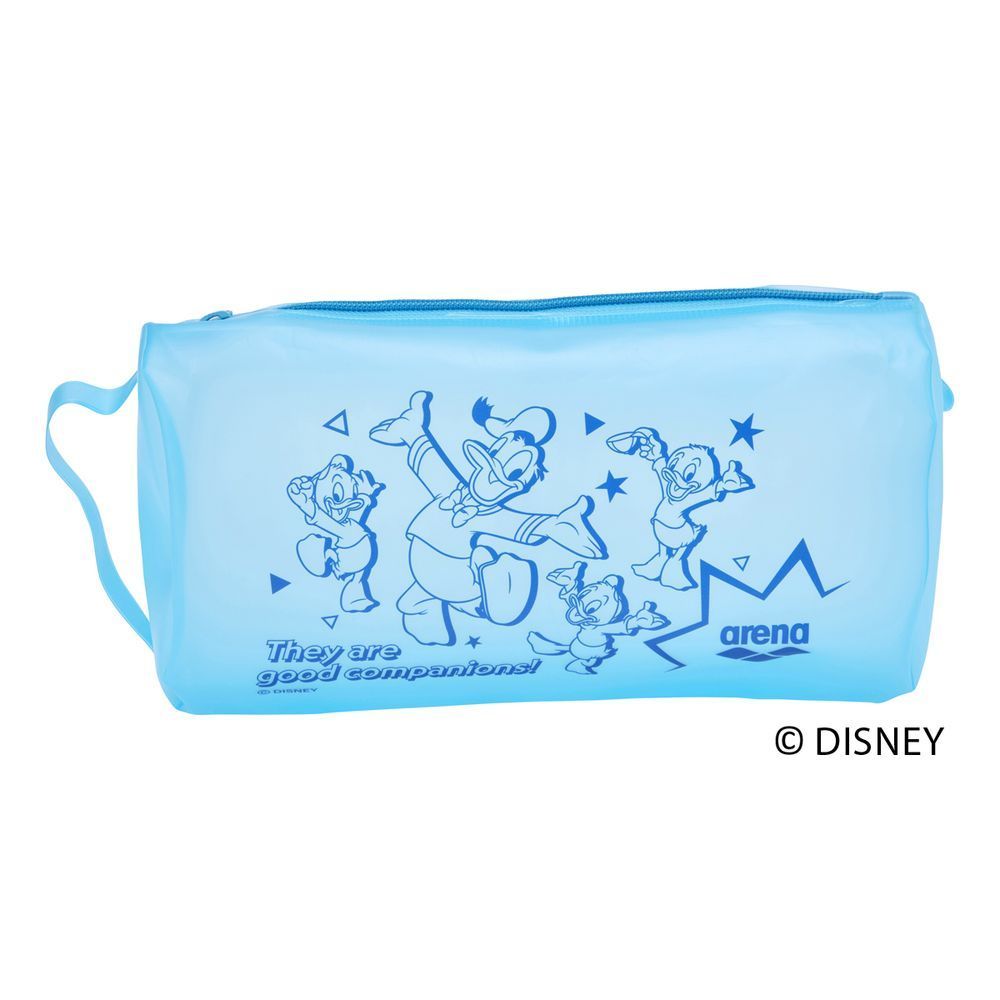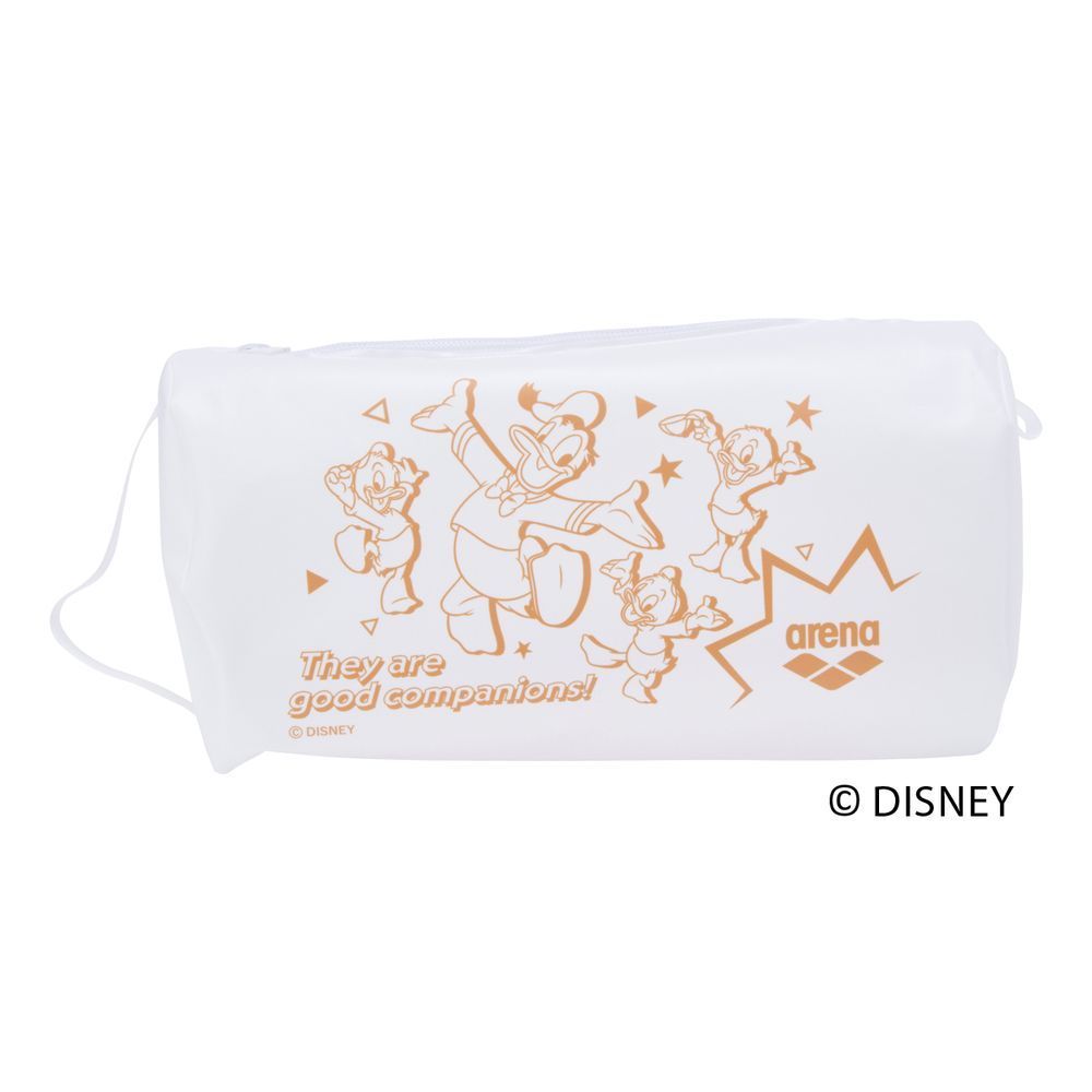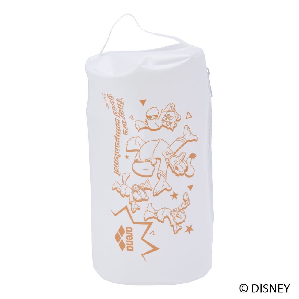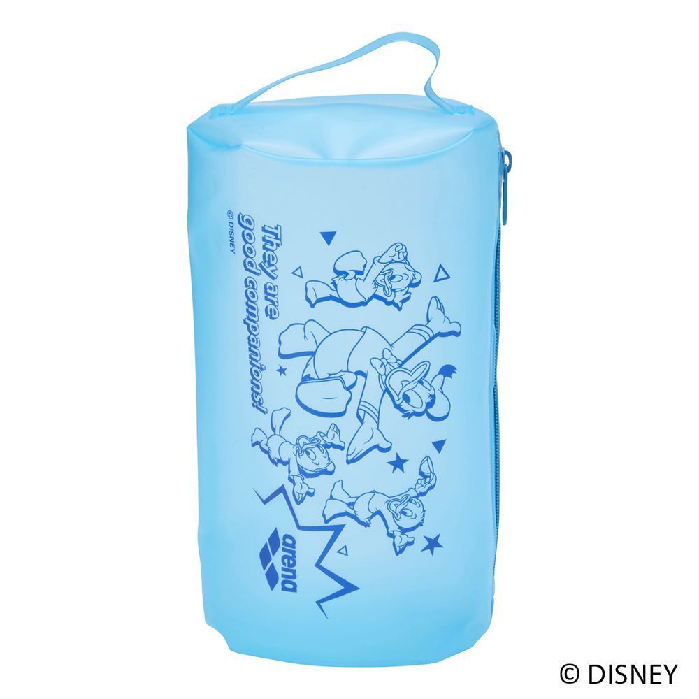 Disney(ディズニー)デザインのプルーフバッグ。1つ持っているとスイマーに便利なラウンド型。プールで泳いだあとに濡れた水着やキャップ、セームタオルなどを収納するのに便利。また、バッグインバッグがしやすいサイズのため、トレーニングに行くときのスイミング用品の収納におすすめ。中が見やすいブルー、ピンクと、中が見えにくいホワイトで使用用途や好みに合わせて使用可能。「ドナルド・ダック」 とその甥っ子たち「 ヒューイ・デューイ・ルーイ」をプリントした楽しい雰囲気のデザイン。デザイン連動の水着やメッシュキャップとのコーディネートもおすすめ(水着の対象品番:AS5FWM52L / AS5FWM52G / AS5FWM53L / AS5FWM53G / AS5FWM54L / AS5FWM55L メッシュキャップの対象品番:AS5FSC81U)。