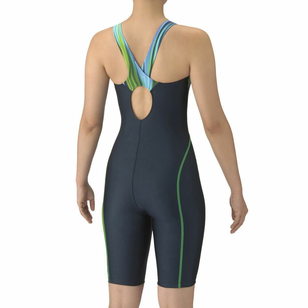 【AQUA EXA - アクアエクサ】「泳ぎやすさ」を追求したフィットネス水着、AQUA EXA(アクアエクサ)シリーズ。上達を目指すフィットネススイマーにおすすめ。あきの少ないオープンバックタイプで、背中の露出を抑えつつ、水が抜けるため泳ぎやすい。膝上まで生地があるハーフレッグ丈で、脚の露出を抑えるため、安心感を求める方におすすめ。大きく開いて着脱がしやすい「着やストラップ」搭載。はっ水生地を使用しており、シャープな水きれで軽い泳ぎ心地が特徴。パッドは「ぴったりパッド」を使用しており、水着に縫い込まれているため、水の中でもズレにくくフィット感を重視する方におすすめ。オーロラをイメージした色鮮やかな流線を肩から脚にかけてダイナミックに表現。プールの中での顔映りをよく見せてくれるようなデザイン。※効果や使用感には個人差があります。