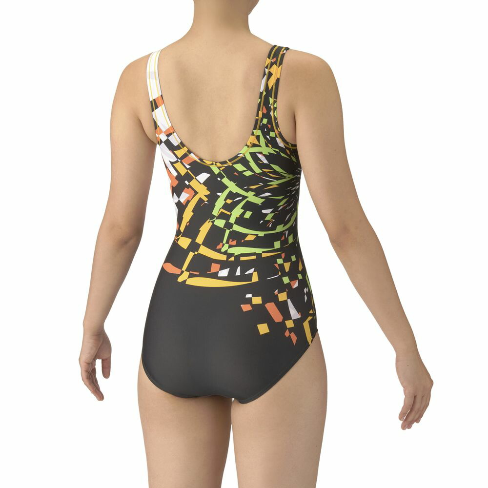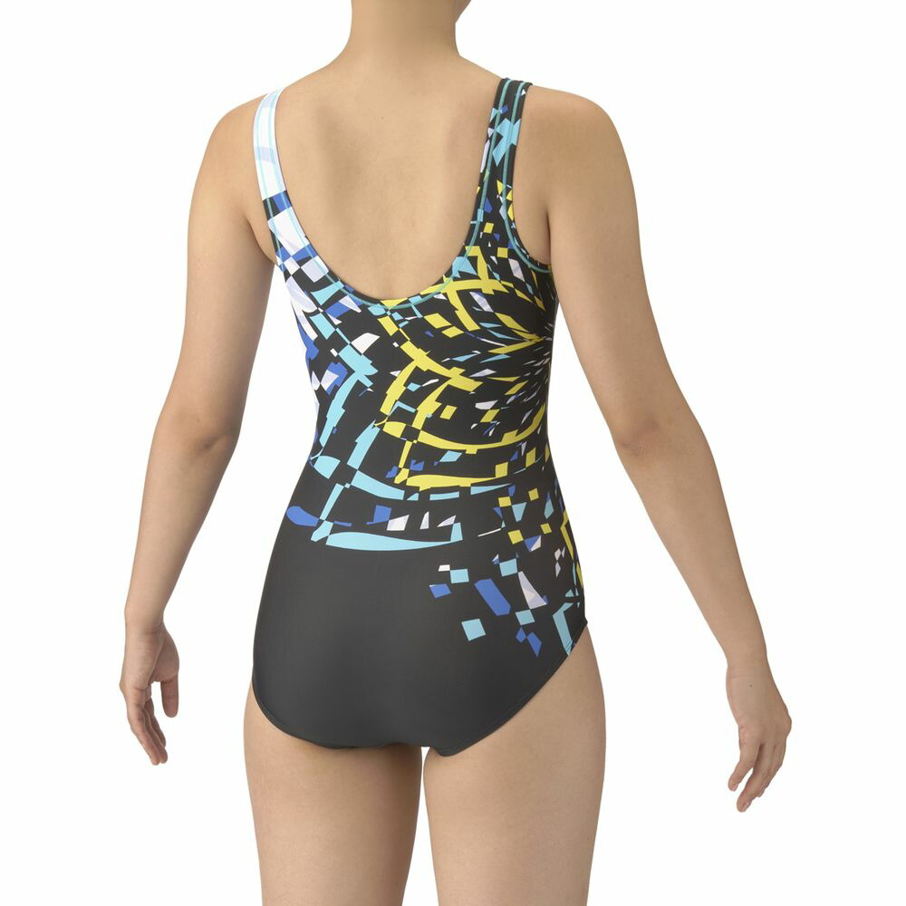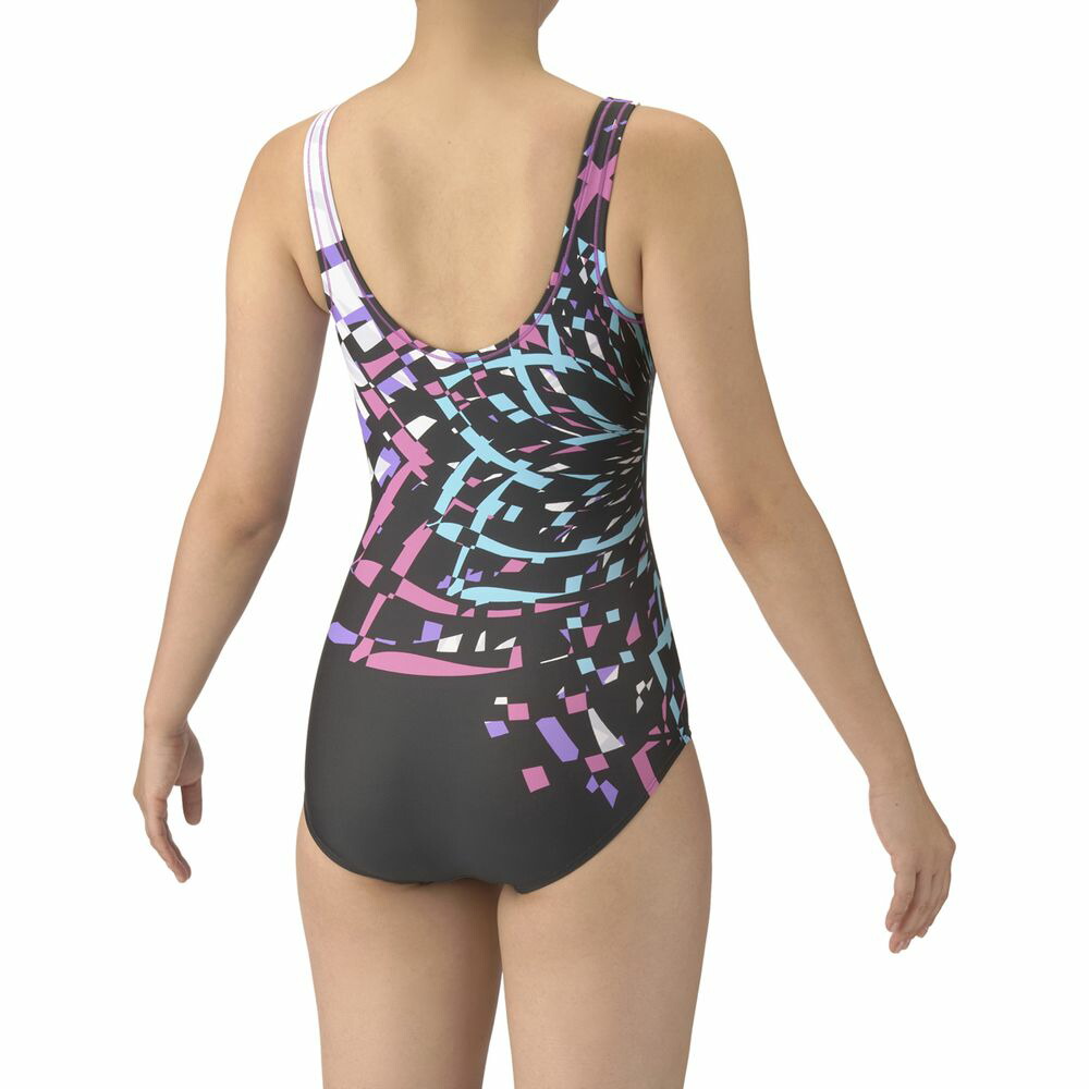 アクアビクスや水中ウォーキングなど、健康やリフレッシュのためにプールでのエクササイズを楽しむフィットネススイマーにおすすめのフィットネス水着。脚さばきのいいワンピースタイプで、U字型のバックスタイルは着脱が簡単。パッドは、「差し込みパッド」を使用しており取り外しが可能。また、パッドポケット内に収まるため、脱ぎ着がしやすく、水の中でもしっかりフィットし、安心感のある仕様。花を幾何学的に表現した華やかなデザインが大きくプリントされ、プールの中での顔映りをよく見せてくれるようなデザイン表現。首回りのさりげないカラーステッチがデザインアクセント。※この製品は縫製上、一点一点プリントの柄の見え方に違いが生じますので予めご了承ください。