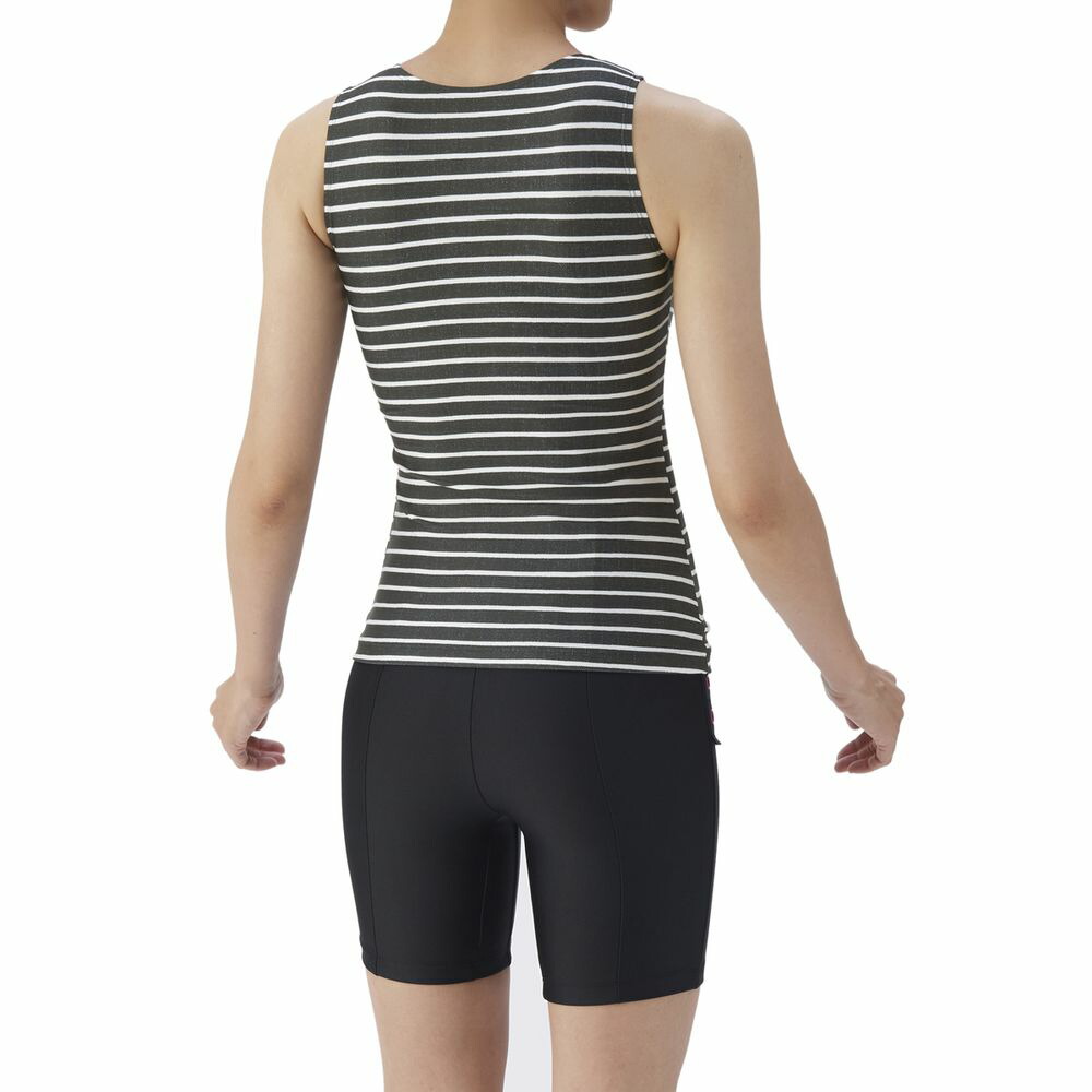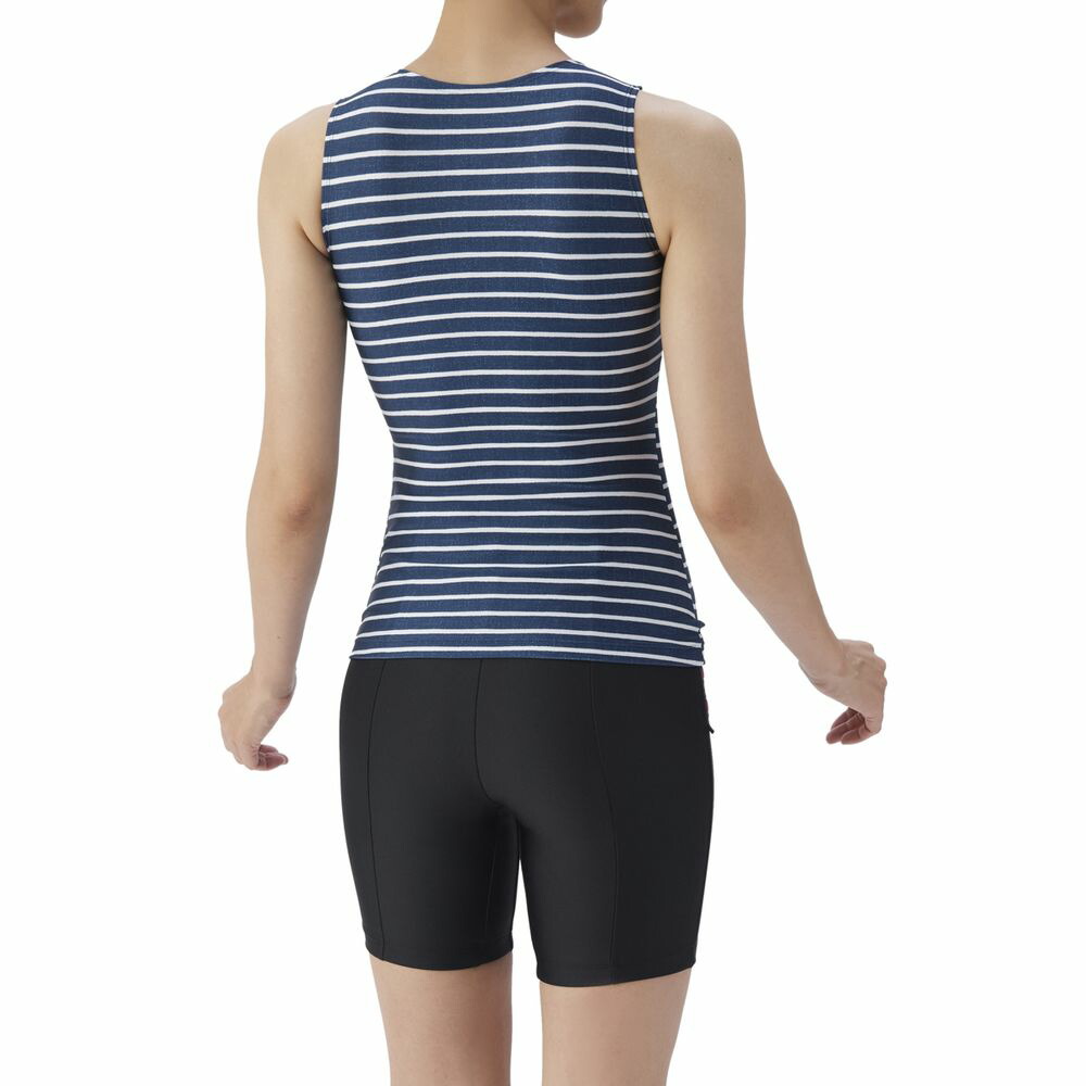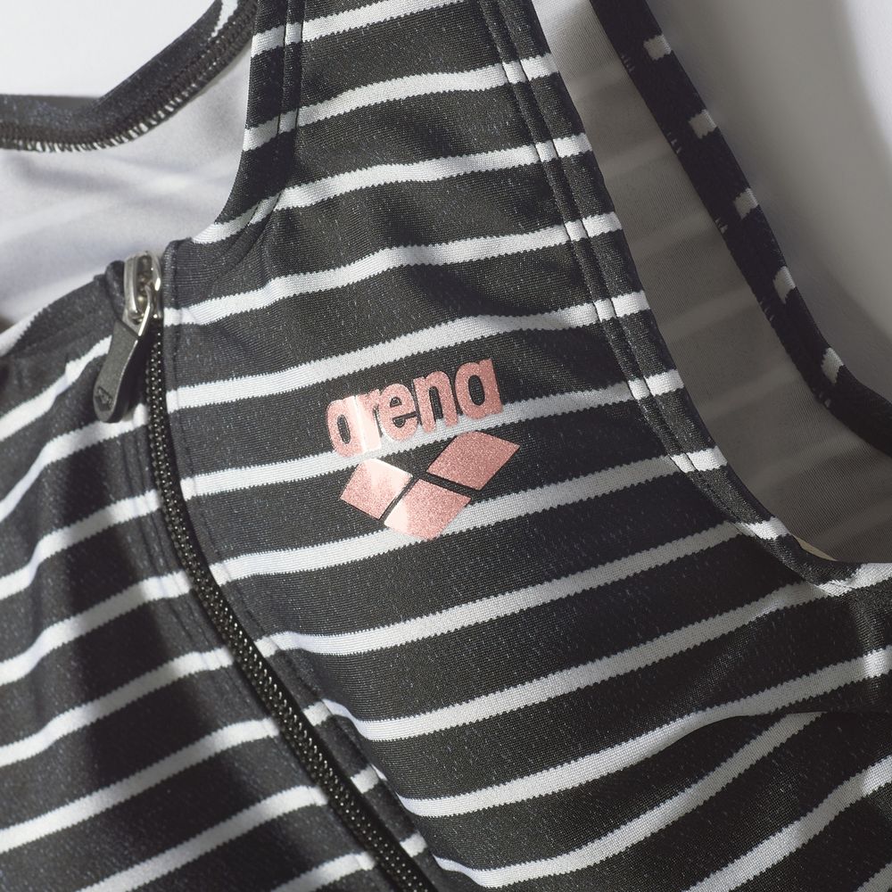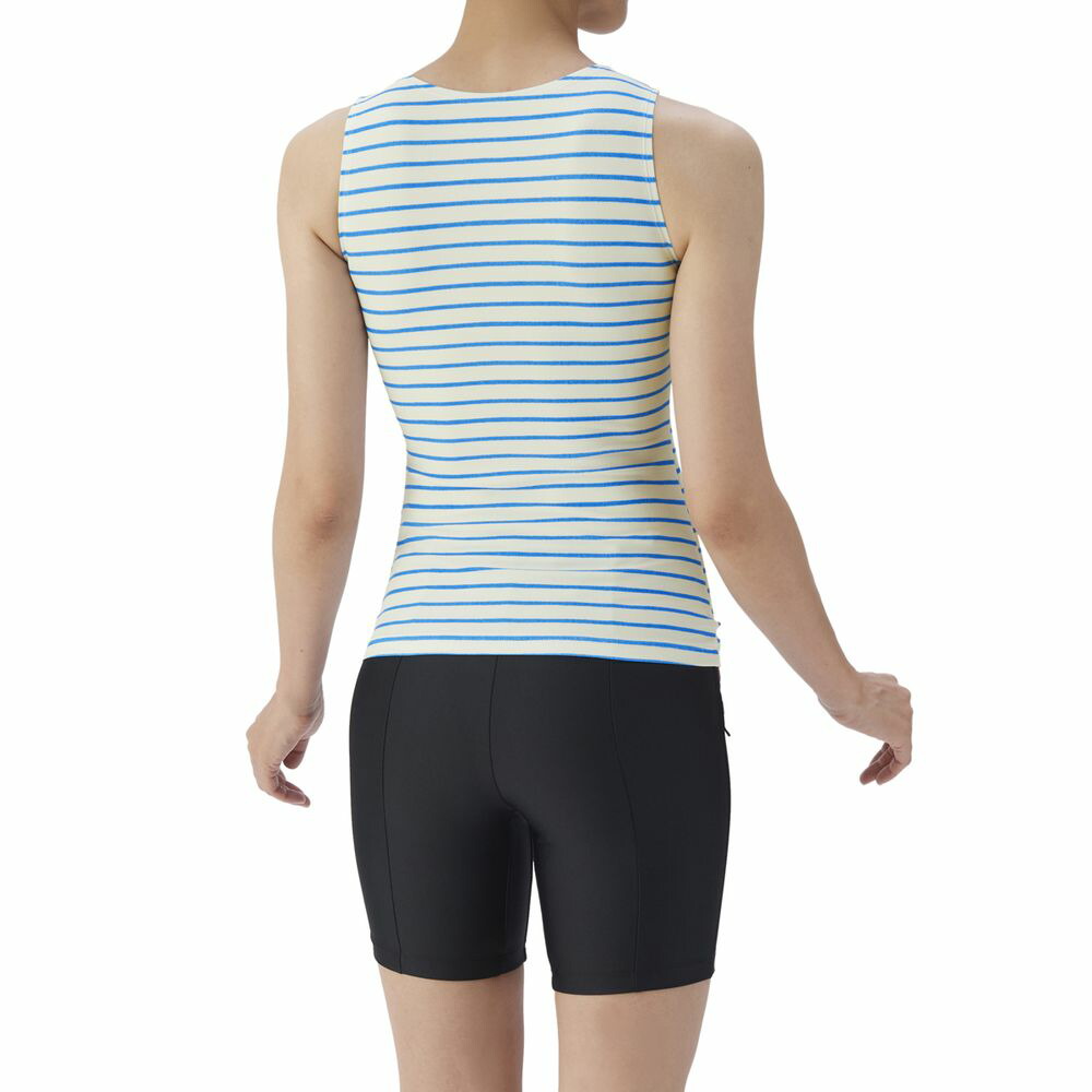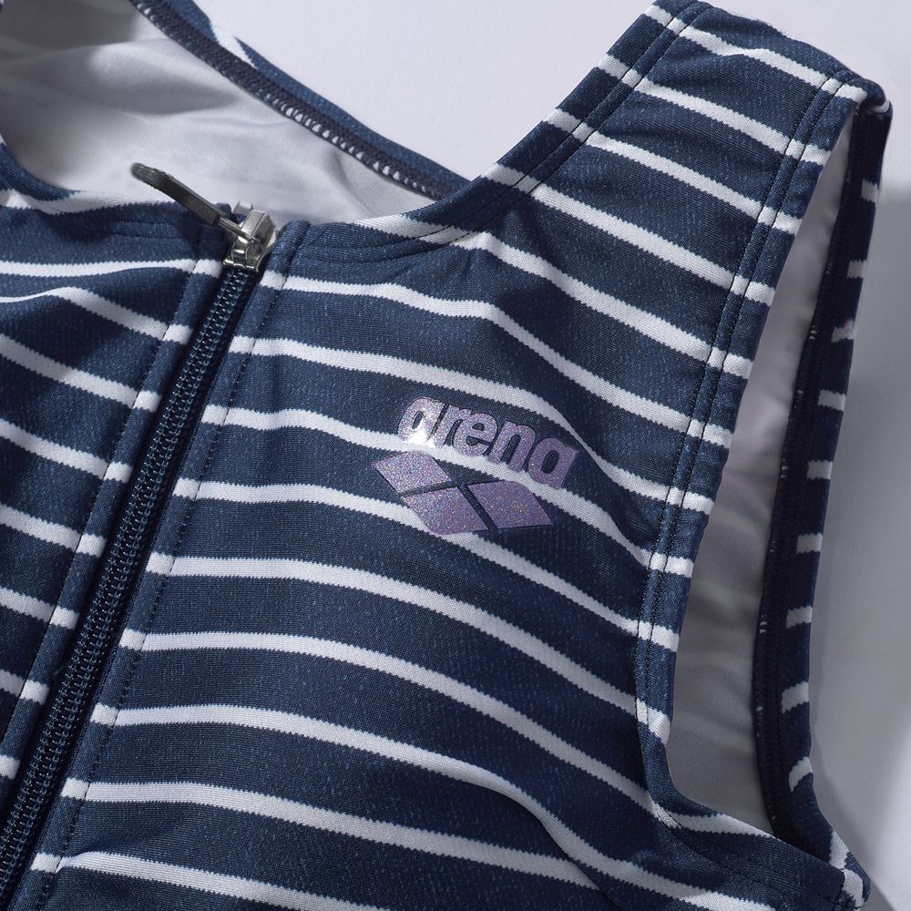 【すらっとセパ】「すっきりしたシルエット・優れたフィット感」をコンセプトにしたフィットネス水着、「すらっとセパ」 シリーズ。アクアビクスや水中ウォーキングなど、健康やリフレッシュのためにプールでのエクササイズを楽しむフィットネススイマーにおすすめ。「すらっとセパ」は、株式会社ワコールと、株式会社デサントが保有するアリーナブランドの共同開発により生まれた商品。上下が分かれたセパレーツ水着のため、着脱がしやすい。パッドは、「差し込みパッド」を使用しており取り外しが可能。また、パッドポケット内に収まるため、脱ぎ着がしやすく、水の中でもしっかりフィットし、安心感のある仕様。ポイント1:デコルテきれい設計 ポイント2:幅広アンダーゴムにより、バストをしっかりホールド ポイント3:締め付け感が少ないのにウエストすっきり ポイント4:3段階で調整可能な大きめカラースナップ ポイント5:背中の露出を抑えた「カバーバック」 ポイント6:洋服感覚で着用しやすいボーダープリントデザイン ポイント7:きらめくラメ入りロゴ ポイント8:人とちょっと違う水着をお求めの方におすすめ