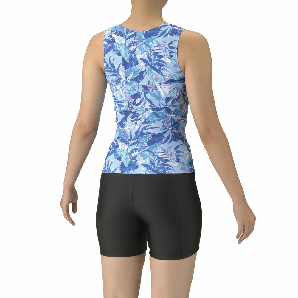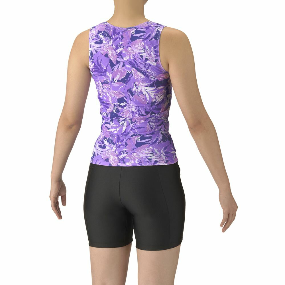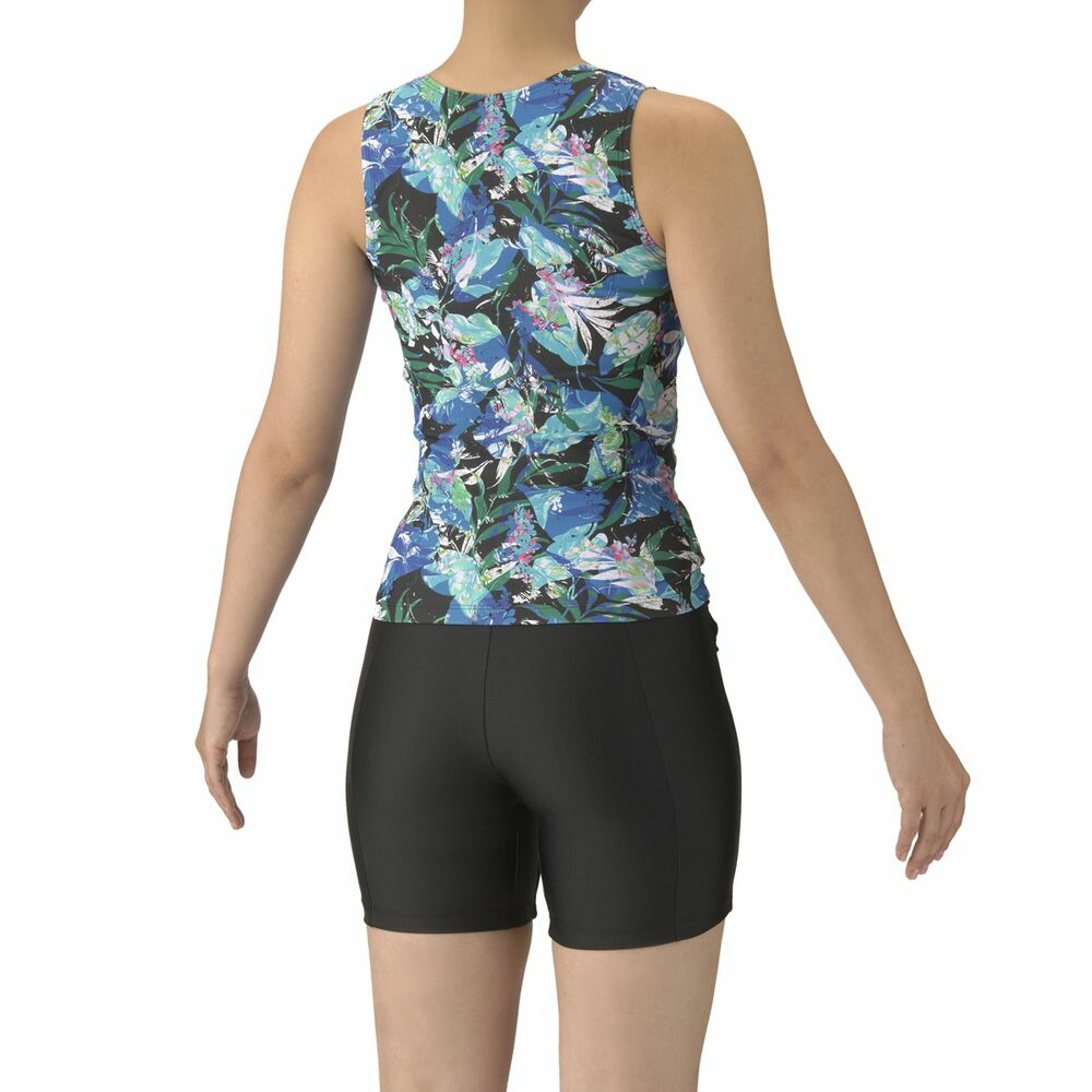 アクアビクスや水中ウォーキングなど、健康やリフレッシュのためにプールでのエクササイズを楽しむフィットネススイマーにおすすめのフィットネス水着。上下が分かれたセパレーツ水着で、背中の露出を抑えた「カバーバック」は安心感をお求めの方におすすめ。ファスナー付きのため、着脱が簡単。3段階で調整可能な大きめカラースナップがトップスとボトムスをつなぎとめてくれるため、水中でもめくれ上がりにくい。パッドは、「差し込みパッド」を使用しており取り外しが可能。また、パッドポケット内に収まるため、脱ぎ着がしやすく、水の中でもしっかりフィットし、安心感のある仕様。葉っぱや花などの植物をモチーフとしたプリントデザイン。プールでの顔映りをよく見せてくれるような色鮮やかなカラーリングで表現。※この製品は縫製上、一点一点プリント柄の見え方に違いが生じますので予めご了承ください。