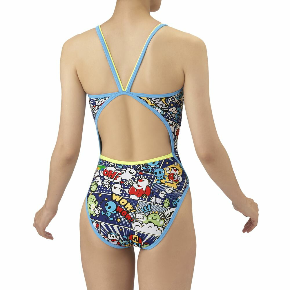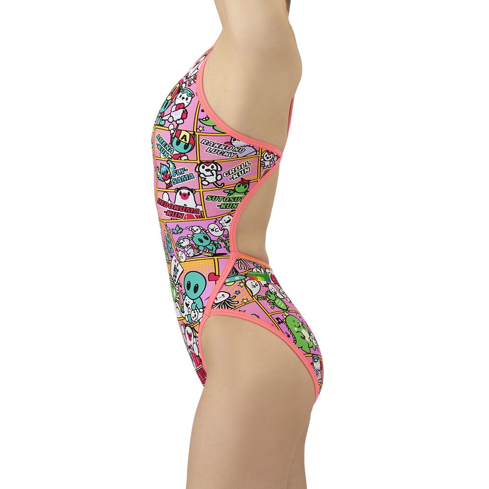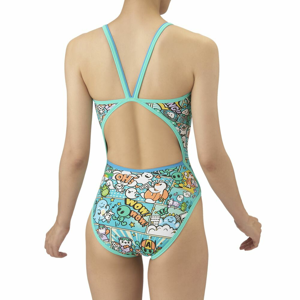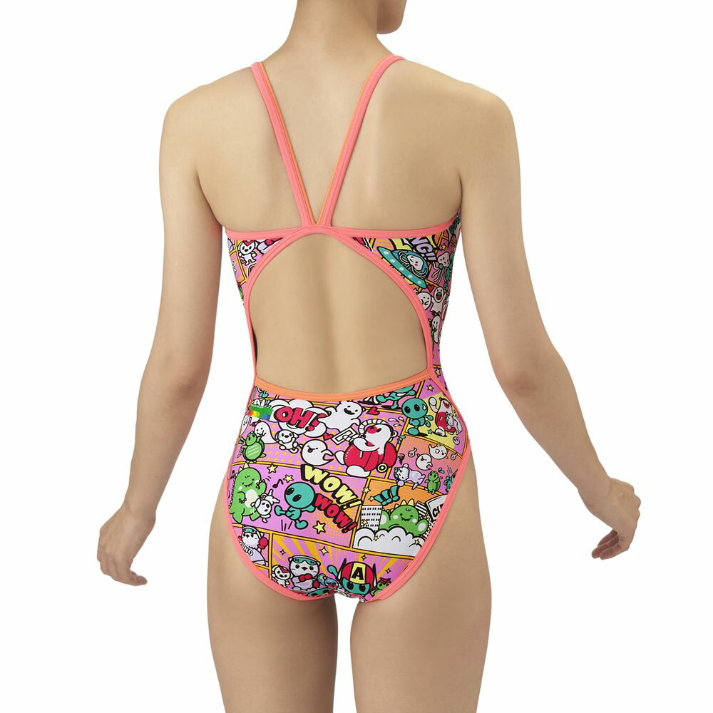 トレーニングカテゴリー「TOUGHSUITシリーズ」。ジュニア用サイズ大会に向けて練習を重ねる頻度が高いスイマーにオススメの練習用水着。環境に配慮したリサイクルポリエステル素材「タフスキンEP」を使用し塩素に強く長持ち。全てのスイマーに人気のアリーナくんの総柄ワンピースタイプ。AS5FWM00Lで展開するテーマ(宇宙や地球)と連動する冒険物語。アメリカンコミック調の柄は鮮やかな色合いとダイナミックな線が特徴でインパクトのあるデザイン。アリーナくんたちと地球外生命体(怪獣、宇宙人、お化け)が出会い、友達になる過程をプリントに表現。地球を守る戦隊ヒーロー風のスタイルを取り入れることで、アリーナくんたちのチームとしての一体感を演出。カラフルな4配色の展開。前身頃、後身頃共に黒の裏地付き。*この商品は縫製上、一点一点プリント柄の見え方に違いが生じますので予めご了承ください。