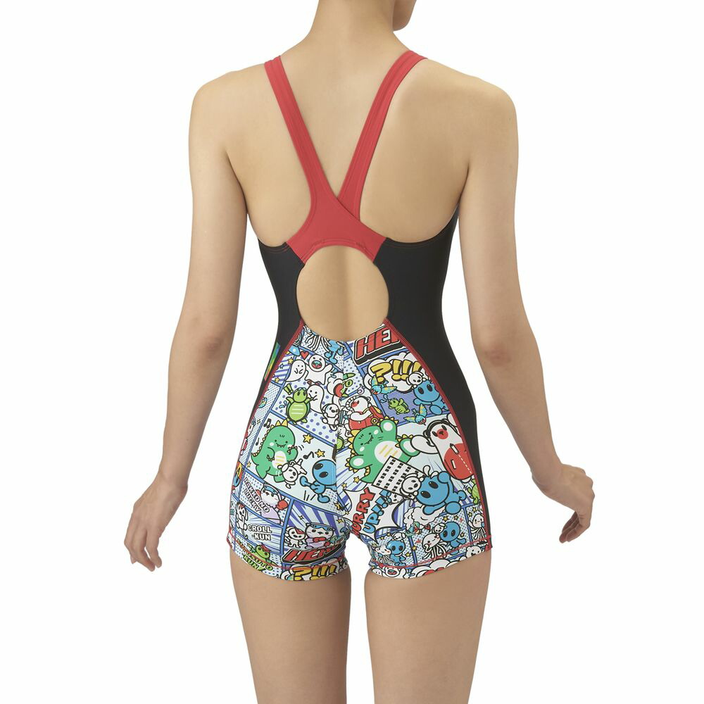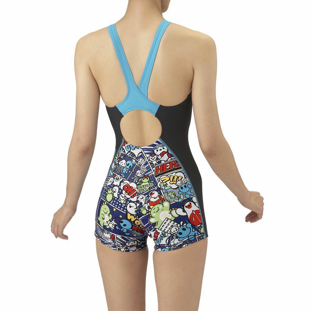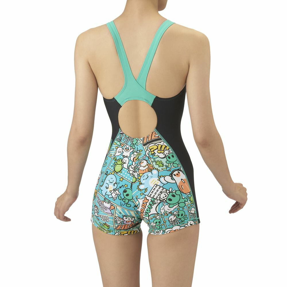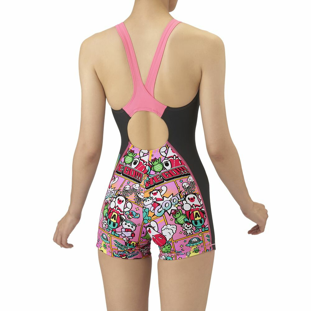 トレーニングカテゴリー「TOUGHSUITシリーズ」。大会に向けて練習を重ねる頻度が高いスイマーにオススメの練習用水着。環境に配慮したリサイクルポリエステル素材「タフスキンE、EP及びT2E」を使用し塩素に強く長持ち。全てのスイマーに人気のアリーナくんの総柄ミドルレッグタイプ。AS5FWM00Lで展開するテーマ(宇宙や地球)と連動する冒険物語。アメリカンコミック調の柄は鮮やかな色合いとダイナミックな線が特徴でインパクトのあるデザイン。アリーナくんたちと地球外生命体(怪獣、宇宙人、お化け)が出会い、友達になる過程をプリントに表現。地球を守る戦隊ヒーロー風のスタイルを取り入れることで、アリーナくんたちのチームとしての一体感を演出。カラフルな4配色の展開。前身頃、後身頃に黒の裏地付き(脇は裏なし)*この商品は縫製上、一点一点プリント柄の見え方に違いが生じますので予めご了承ください。