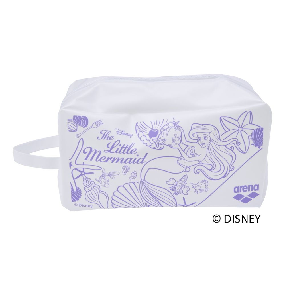 Disney(ディズニー)デザインのプルーフバッグ。防水素材を使用しているため、プールで泳いだあとに濡れた水着やキャップ、セームタオルなどを収納するのに便利。マチが大きく、大容量に適したサイズ。映画『リトル・マーメイド』に登場するプリンセス 「アリエル」 が海の中で友達の「フランダ―」と一緒に遊ぶ様子が描かれたデザイン。貝殻やヒトデなど、海を連想するモチーフと合わせて可愛く表現。「アリエル」 たちと一緒に気分を上げて、プールで泳ごう!デザイン連動の水着(AS5SWM55L / AS5SWM55G / AS5SWM56L / AS5SWM56G / AS5SWM57L)やメッシュキャップ(AS5SSC82U)とのコーディネートもおすすめ。