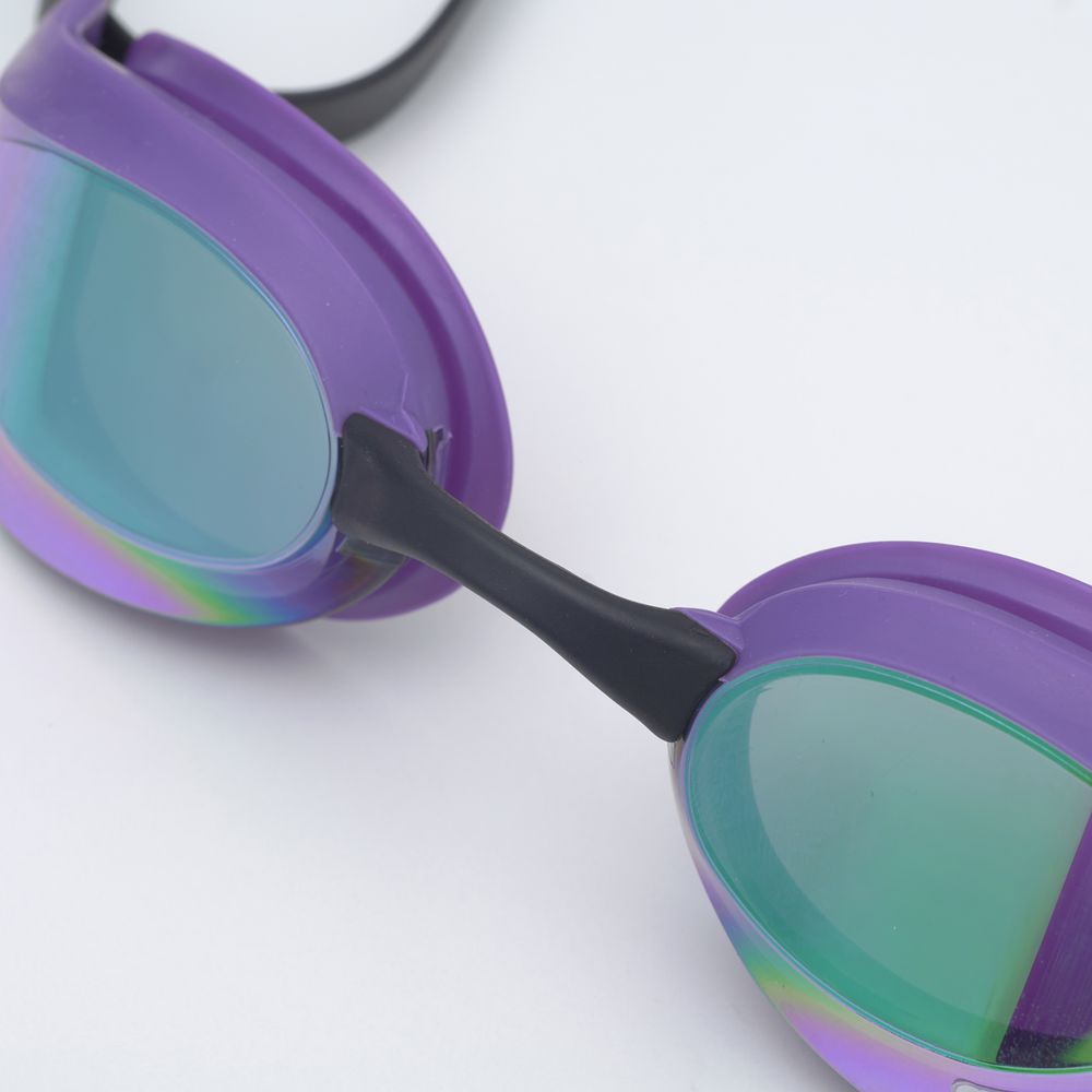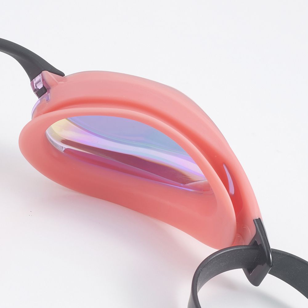 公式大会に出場するために必要なWORLD AQUATICS(世界水泳連盟)承認モデル。1/100秒を争うトップスイマーに向けて開発された、アリーナ最高峰の競泳用スイミングゴーグル。世界中の多くのトップスイマーが国際大会で使用している「cobra」シリーズ。クッションを搭載することにより飛び込み時などの衝撃によるズレを軽減。アイカップ上部の厚みを低く、下部にフィンの形状を搭載することで、スムーズな水の流れを実現。アイカップ上部のレンズ面を目に近づけることにより、前方方向の視野を広く確保。レンズとバックルの接合部分がしなり、顔とゴーグルの間を狭くすることにより、抵抗の原因となるストラップのバタつきを防ぐ。5サイズの鼻ベルトが同梱されており、顔の形に合わせた調整が可能。ミラー加工レンズ。