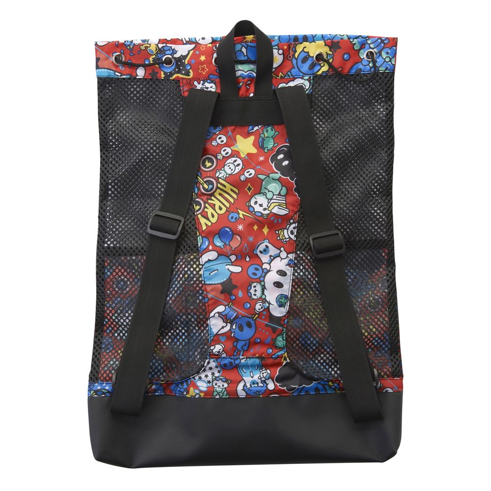 定番のメッシュ素材のバックパック(AS4FBP15U)に、26SSのデザインテーマを落とし込んだ総柄モデル。トレーニングツールやウェアなどを持ち運ぶのに便利。ビート板やフィンなどのトレーニングツールの持ち運びはもちろん、試合会場や招集所でウェアやスイミング用品を収納して持ち運ぶのにも便利なバックパック仕様。前面にはゴーグルやIDカードなどの小さいものを収納できるポケット付き。底面はプルーフ素材になっており、プールサイドなどに置いても中が濡れにくくい。練習から試合まで汎用性があり、1つ持っているとスイマーに便利なバッグ。公式大会招集所持ち込み可。