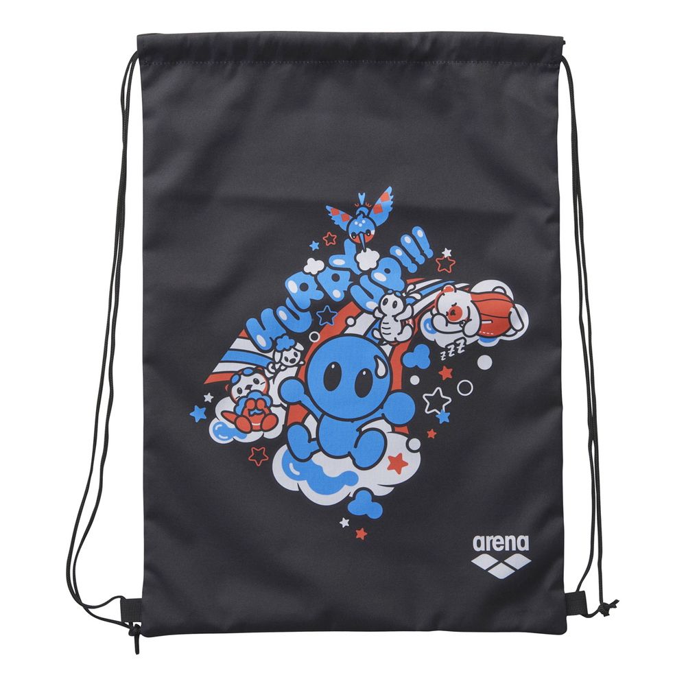 arenaのアイコンであるアリーナくんシリーズのマルチバッグ。アリーナくんと仲間たちが虹の架かった雲の上での様子を表現したデザイン。ナップザック仕様なので、ウェアやスイミング用品を収納して持ち運ぶのに便利。使用しやすいサイズなので、シューズやトレーニングツールも収納可能。公式大会招集所持ち込み可。