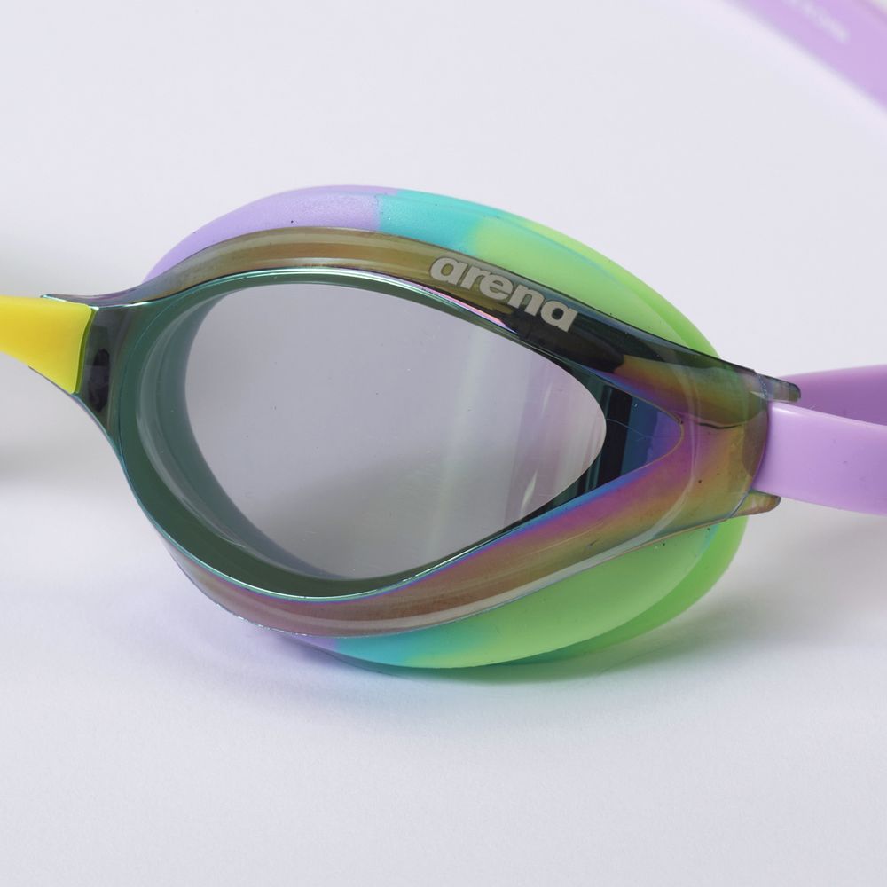 公式大会に出場するために必要なWORLD AQUATICS(世界水泳連盟)承認モデル。トップスイマーから初めて大会に出るスイマーまで、幅広いレベルのスイマーをサポートする競泳用スイミングゴーグル。流水抵抗を抑えるレンズ形状と横方向に伸びたレンズが広い視野を確保。顔にあたるクッションが柔らかく着用感の良いゴーグルで、大会用だけでなく練習用としてもおすすめ。クッションがマルチカラーになっており、おしゃれで気分を明るくするデザイン。外から目が見えにくいミラー加工を施したレンズ。
