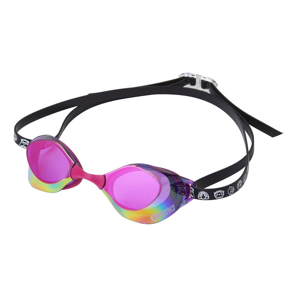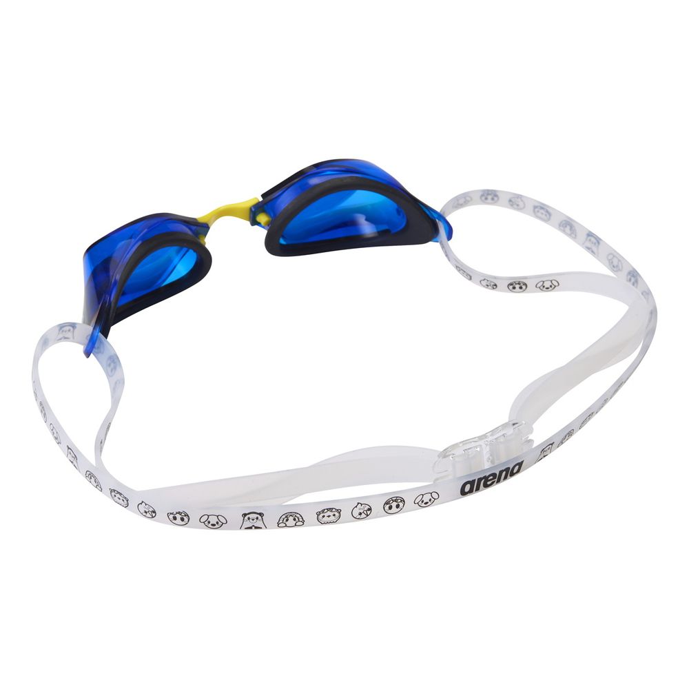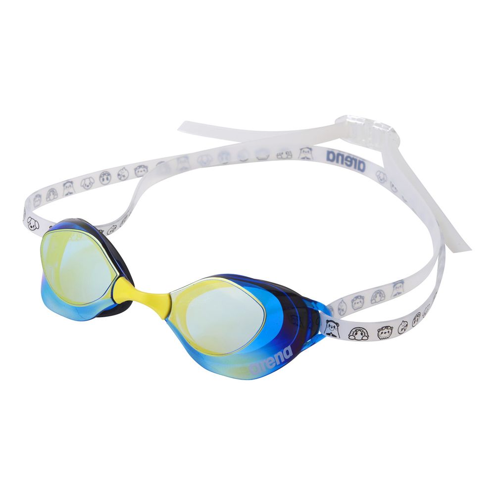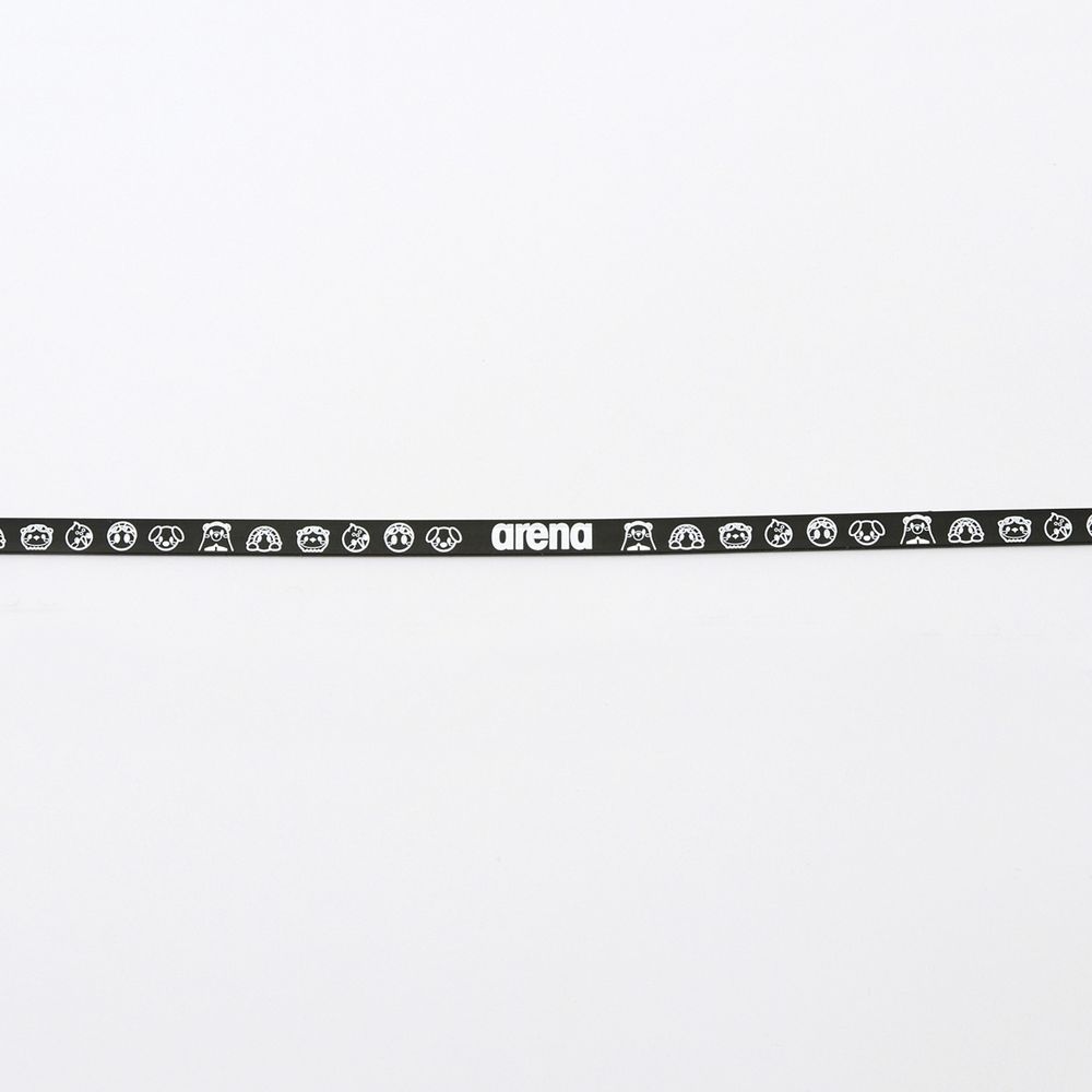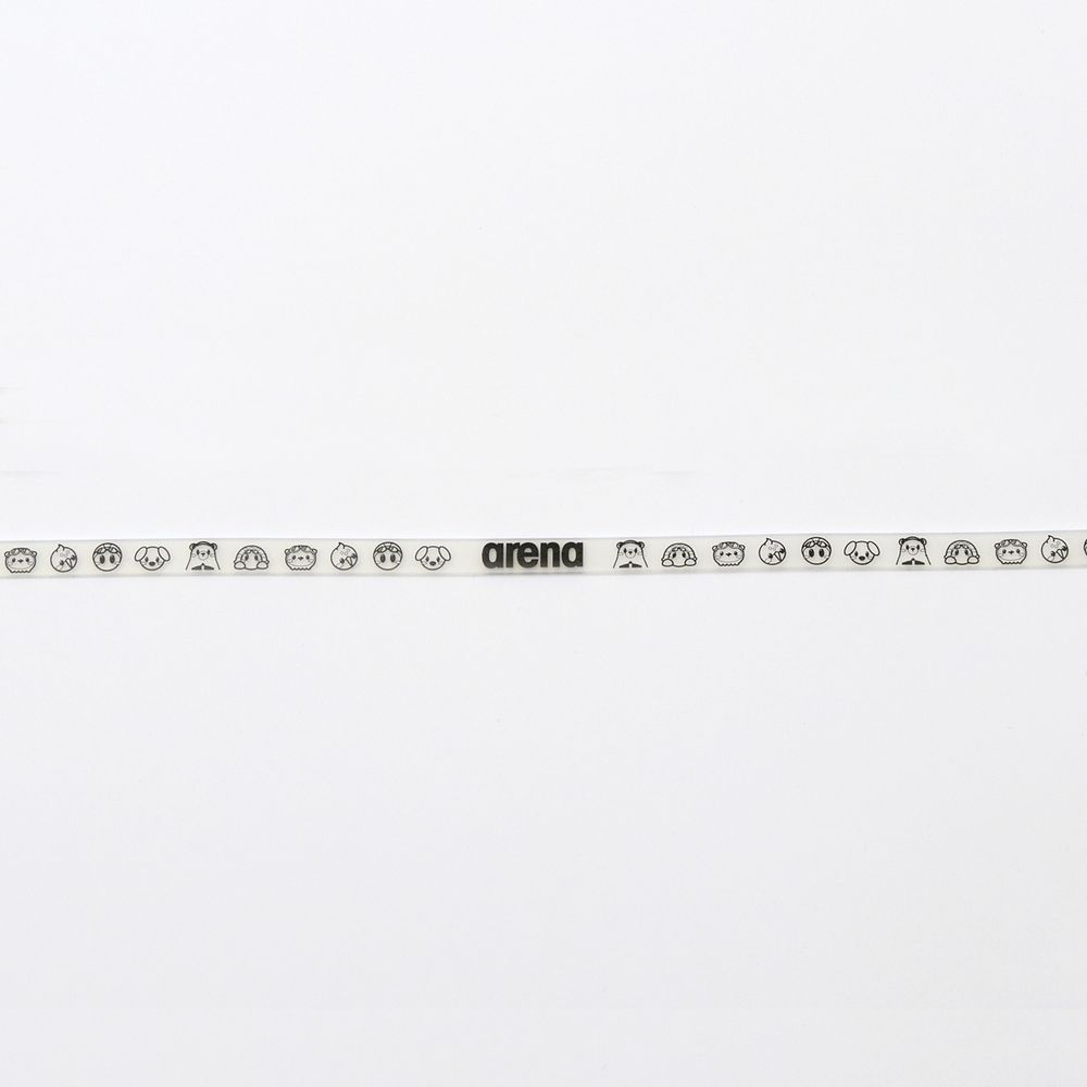 「アリーナくんと仲間たち」のデザインがプリントされたスイミングゴーグル用のベルト。アジャスター付き。ベルト取り換え可能なスイミングゴーグルに使用することで、自分好みのカスタマイズが可能。細かい線でアリーナくんと仲間たちがきれいにプリントされているのが特徴。