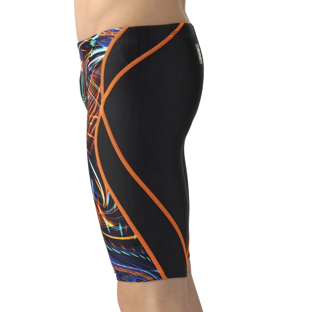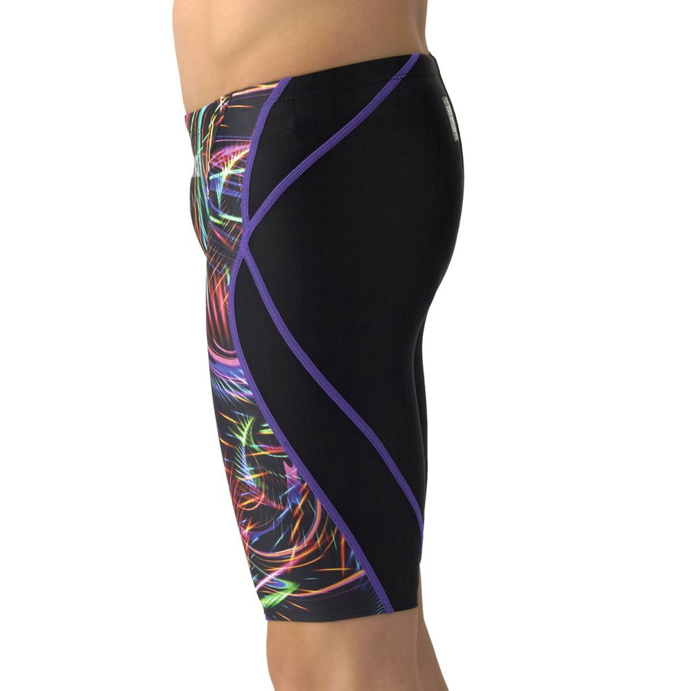 環境に配慮したリサイクルポリエステルを使用したニット素材ECO AQUASTRIPEを採用。初級レーシングスイマーへ向けた「AQUA RACING」シリーズ。公式大会に出場するために必要なWORLD AQUATICS(世界水泳連盟)承認モデルのジュニア用競泳水着。伸びのあるフィット感と安心感のある地厚な生地。はっ水加工でシャープな水切れが特徴。初めてレースに出場するスイマーにオススメ。カラフルなネオンのようなグラフィックを総柄で表現し、レーシングらしい勢いのあるデザイン。*この商品は縫製上、一点一点プリント柄の見え方に違いが生じますので予めご了承ください。