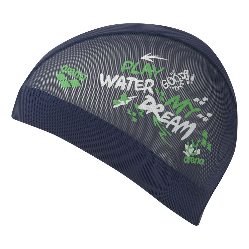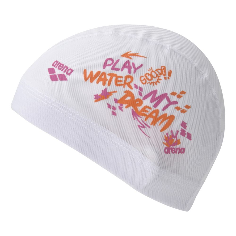 キャッチフレーズをポップにアレンジしたメッシュ素材のスイムキャップ。水抜けが良く、ハードなトレーニングでもムレ感がなく快適に泳ぐことが可能。ハードなトレーニングするスイマーにも、ゆったり泳ぎたいスイマーにも、練習時の着用におススメ。