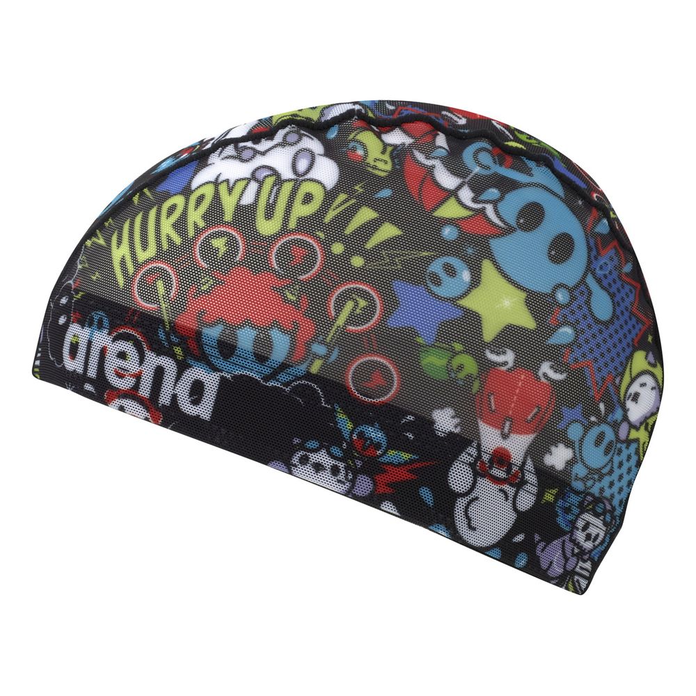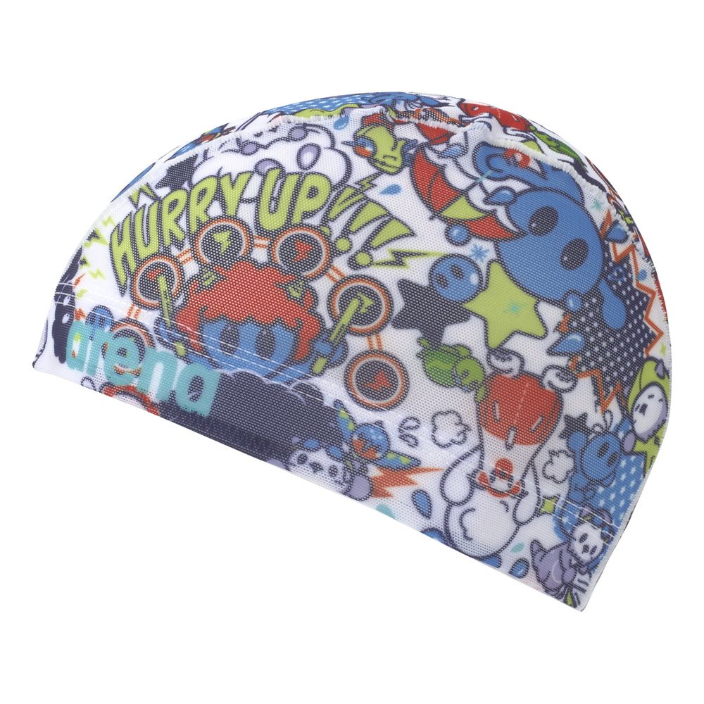 arenaのアイコンであるアリーナくんシリーズのメッシュ素材のスイムキャップ。天候をテーマにアリーナくんと仲間たちを総柄で表現したデザイン。カラフルなプリントを採用したことで、華やかな表現が可能。水抜けが良く、ハードなトレーニングでもムレ感がなく快適に泳ぐことが可能。ハードなトレーニングするスイマーにも、ゆったり泳ぎたいスイマーにも、練習時の着用におススメ。公式大会招集所持ち込み可。