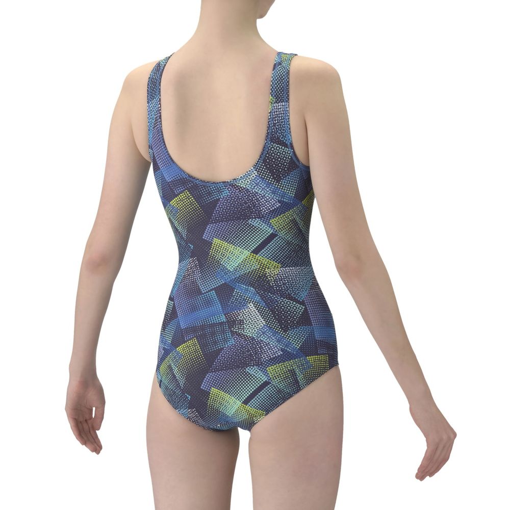 アクアビクスや水中ウォーキングなど、健康やリフレッシュのためにプールでのエクササイズを楽しむフィットネススイマーにおすすめのフィットネス水着。脚さばきのいいワンピースタイプで、U字型のバックスタイルは着脱が簡単。「差し込みパッド」は取り外し可能で、パッドポケット内に収まる設計。脱ぎ着がしやすく、水中でもしっかりフィットする安心感のある仕様。細かなドットを組み合わせた幾何柄プリント。立体感のあるデザインがボディラインをカバー。※この製品は縫製上、一点一点プリントの柄の見え方に違いが生じますので予めご了承ください。