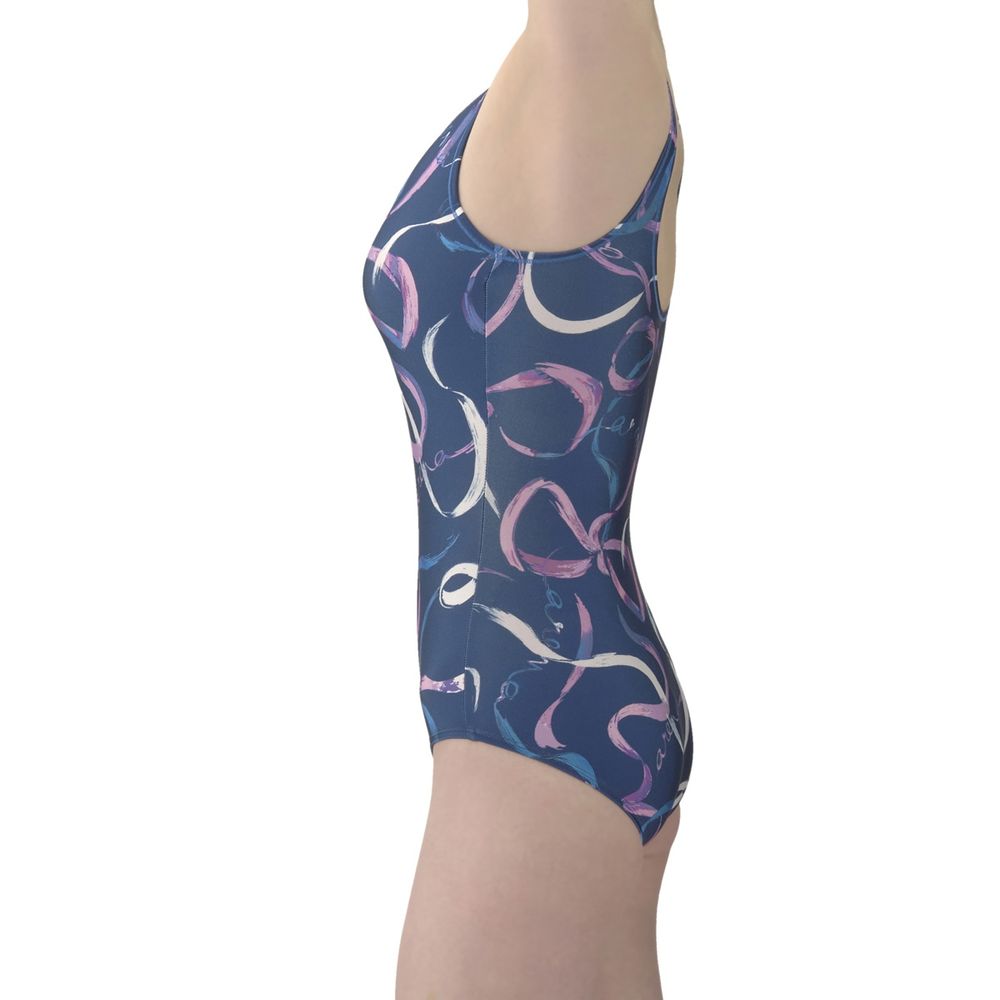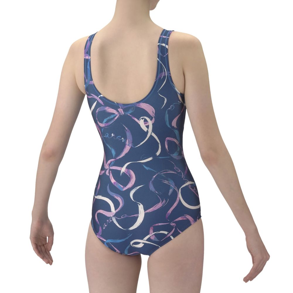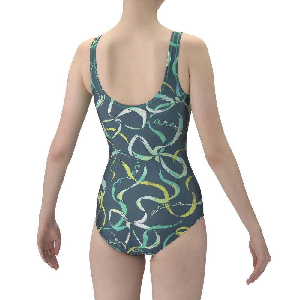 アクアビクスや水中ウォーキングなど、健康やリフレッシュのためにプールでのエクササイズを楽しむフィットネススイマーにおすすめのフィットネス水着。脚さばきのいいワンピースタイプで、U字型のバックスタイルは着脱が簡単。「差し込みパッド」は取り外し可能で、パッドポケット内に収まる設計。脱ぎ着がしやすく、水中でもしっかりフィットする安心感のある仕様。軽やかな動きのある流線とリボンをモチーフにしたプリントデザイン。華やかでエレガントな雰囲気がプールでの時間をいつもよりスペシャルに感じさせてくれるようなデザイン。※この製品は縫製上、一点一点プリントの柄の見え方に違いが生じますので予めご了承ください。