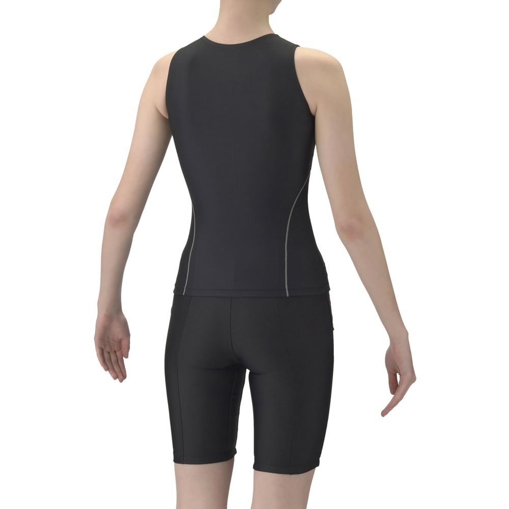 【すらっとセパ】「すっきりしたシルエット・優れたフィット感」をコンセプトにしたフィットネス水着、「すらっとセパ」 シリーズ。アクアビクスや水中ウォーキングなど、健康やリフレッシュのためにプールでのエクササイズを楽しむフィットネススイマーにおすすめ。「すらっとセパ」は株式会社デサントが保有するアリーナブランドと、株式会社ワコールとの共同開発により生まれた製品。上下が分かれたセパレート水着のため、着脱がしやすい。「差し込みパッド」は取り外し可能で、パッドポケット内に収まる設計。脱ぎ着がしやすく、水中でもしっかりフィットする安心感のある仕様。ポイント1:デコルテきれい設計 ポイント2:幅広アンダーゴムにより、バストをしっかりホールド ポイント3:締め付け感が少ないのにウエストすっきり ポイント4:3段階で調整可能な大きめカラースナップ ポイント5:背中の露出を抑えた「カバーバック」 ポイント6:露出を抑えたハーフ丈パンツ ポイント7:一枚あると便利な安心感あるベーシックデザイン