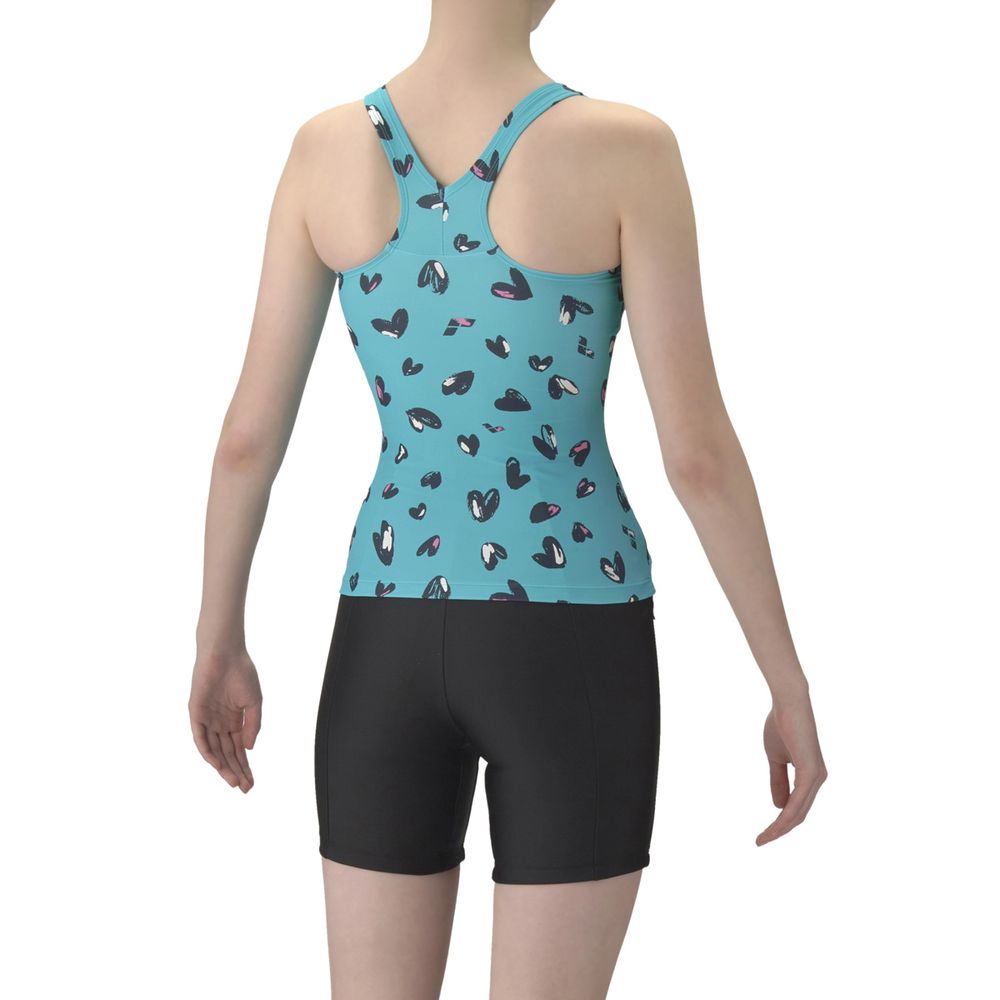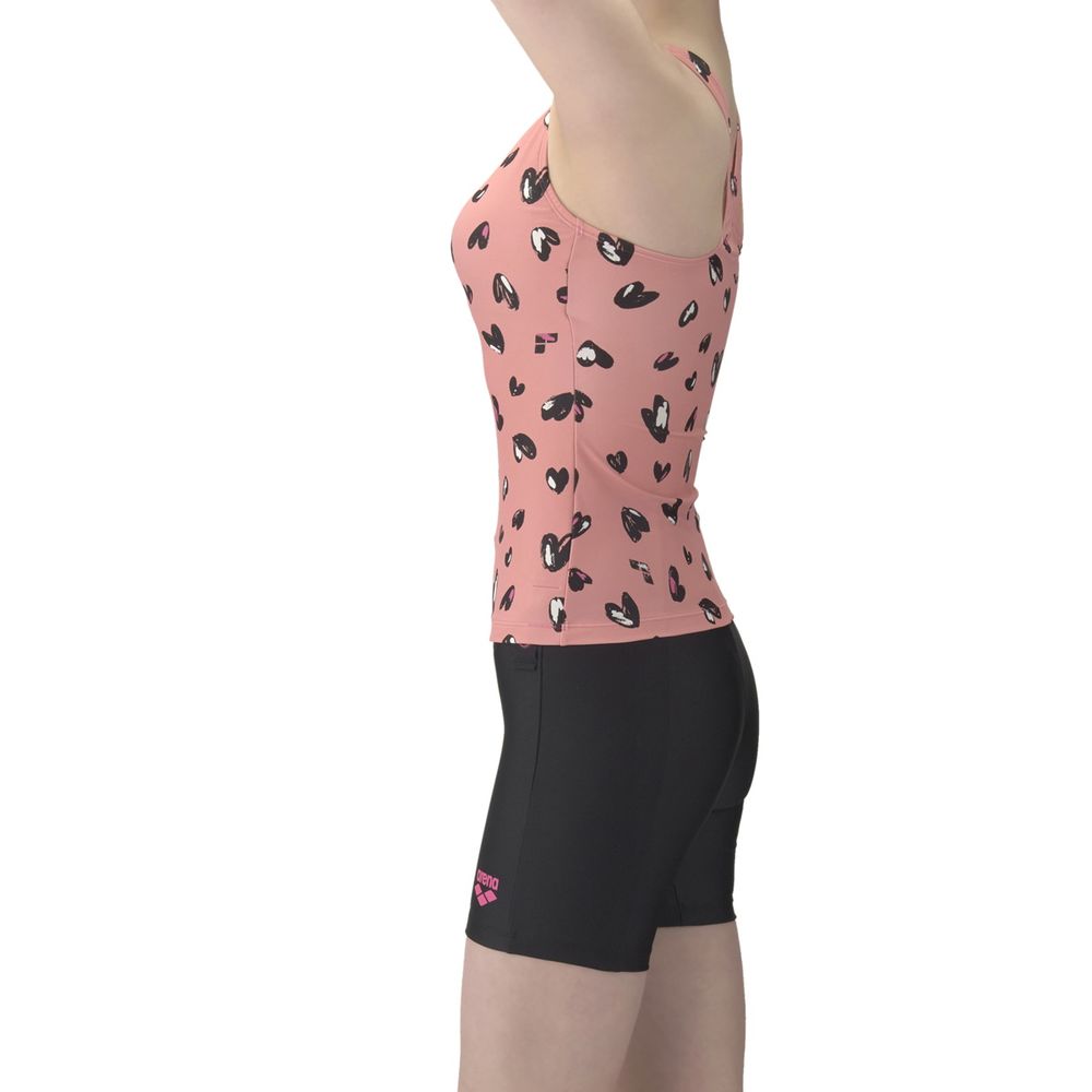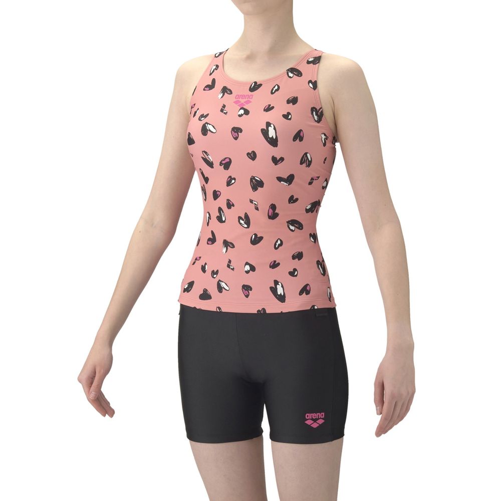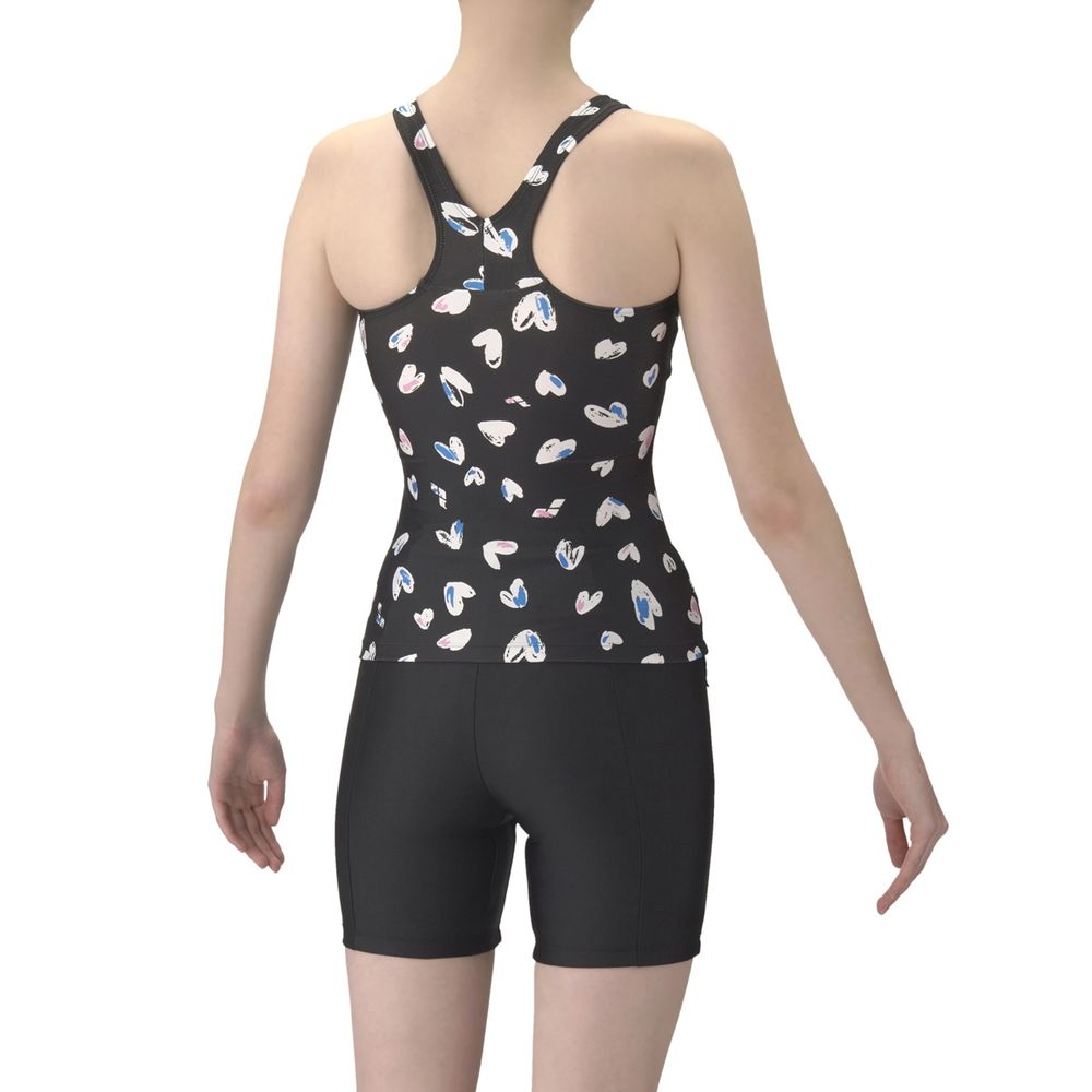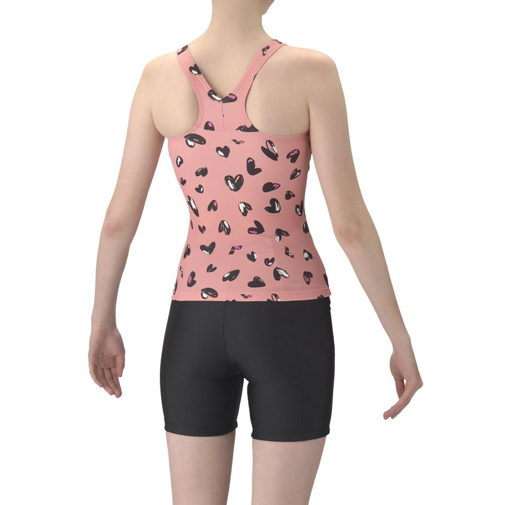 アクアビクスや水中ウォーキングなど、健康やリフレッシュのためにプールでのエクササイズを楽しむフィットネススイマーにおすすめのフィットネス水着。上下が分かれたセパレート水着で、着脱が簡単。Y字型のバックスタイルは、肩甲骨が動かしやすく泳ぎやすい。3段階で調整可能な大きめカラースナップがトップスとボトムスをつなぎとめてくれるため、水中でもめくれ上がりにくい。「差し込みパッド」は取り外し可能で、パッドポケット内に収まる設計。脱ぎ着がしやすく、水中でもしっかりフィットする安心感のある仕様。大人の女性にも似合う手書き調のハートモチーフをプリント。可愛さとカッコよさの程よいバランスのハート柄が、いつもと少し違う雰囲気を演出し、スペシャルな一枚に。※この製品は縫製上、一点一点プリントの柄の見え方に違いが生じますので予めご了承ください。