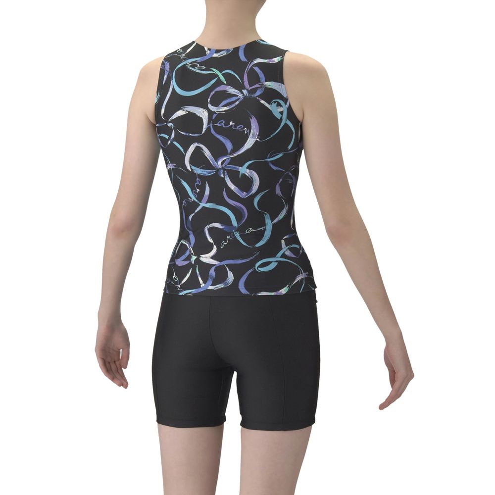 アクアビクスや水中ウォーキングなど、健康やリフレッシュのためにプールでのエクササイズを楽しむフィットネススイマーにおすすめのフィットネス水着。上下が分かれたセパレート水着で、ファスナー付きのため、着脱が簡単。背中の露出を抑えた「カバーバック」は安心感をお求めの方におすすめ。ファスナー付きのため、着脱が簡単。3段階で調整可能な大きめカラースナップがトップスとボトムスをつなぎとめてくれるため、水中でもめくれ上がりにくい。「差し込みパッド」は取り外し可能で、パッドポケット内に収まる設計。脱ぎ着がしやすく、水中でもしっかりフィットする安心感のある仕様。軽やかな動きのある流線とリボンをモチーフにしたプリントデザイン。華やかでエレガントな雰囲気がプールでの時間をいつもよりスペシャルに感じさせてくれるようなデザイン。※この製品は縫製上、一点一点プリントの柄の見え方に違いが生じますので予めご了承ください。