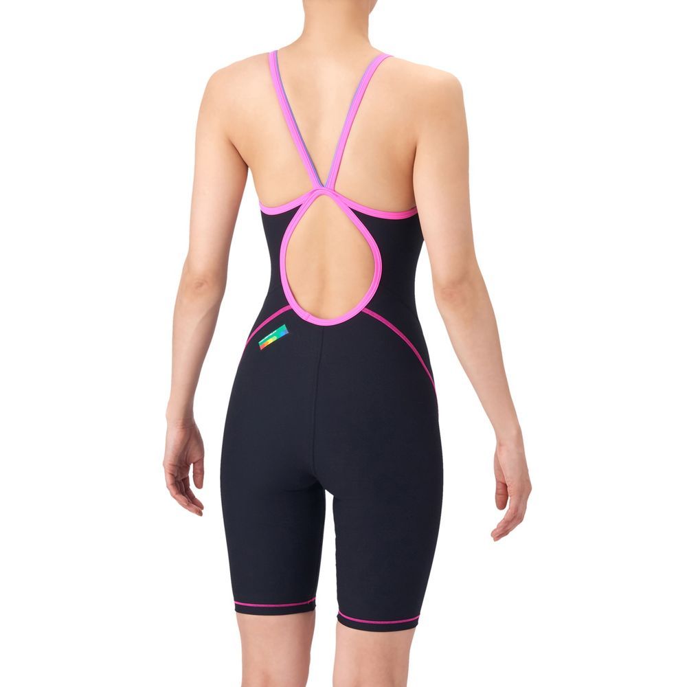 トレーニングカテゴリー「TOUGHSUITシリーズ」 大会に向けて練習を重ねる頻度が高いスイマーにオススメの練習用水着 環境に配慮したリサイクルポリエステル素材「タフスキンE」を使用し塩素に強く長持ち 生地をリニューアルし着心地向上 アリーナロゴのラバープリントを脇に入れたアリーナらしいプリント NVBLとBKPKのラバープリントは光の角度によって表情を変えるオーロラプリントで、シンプルながらも光を受けてきれいに映えるデザイン 前当て部分に黒の裏地付き ハーフレッグタイプ