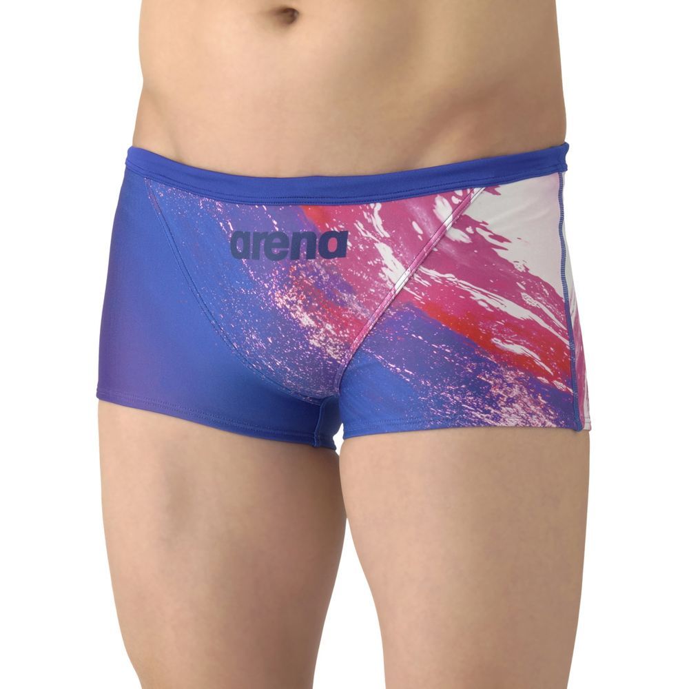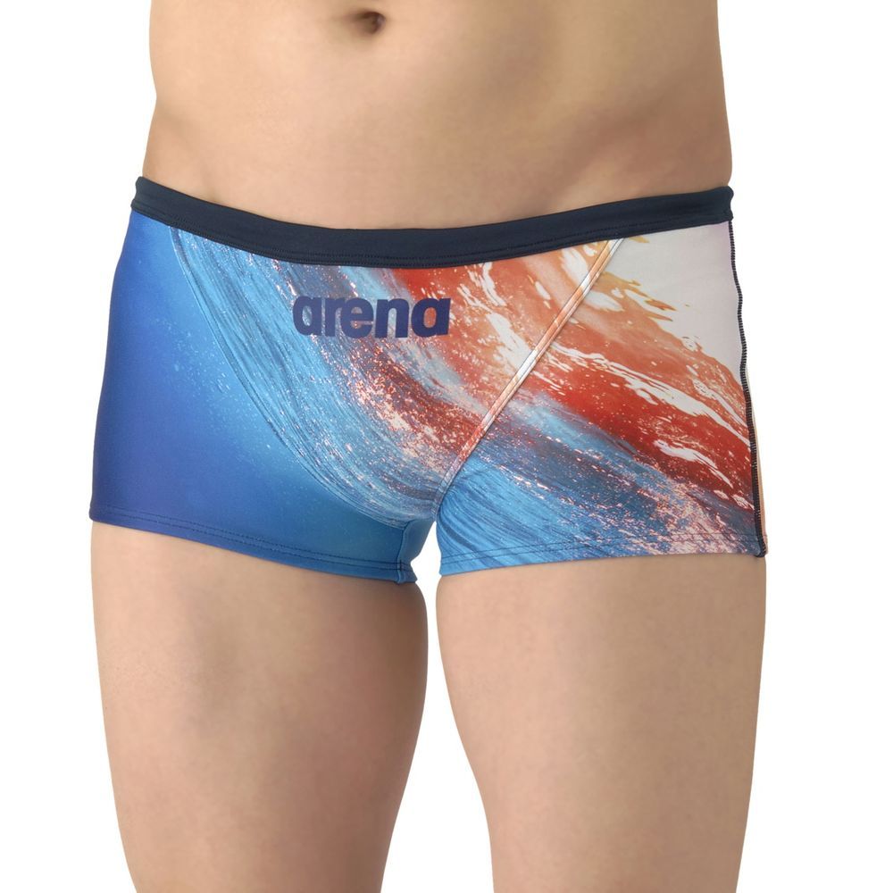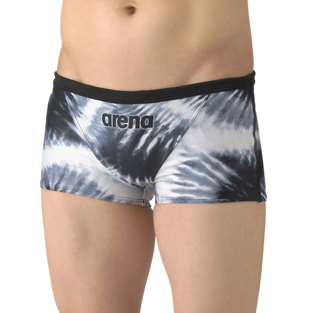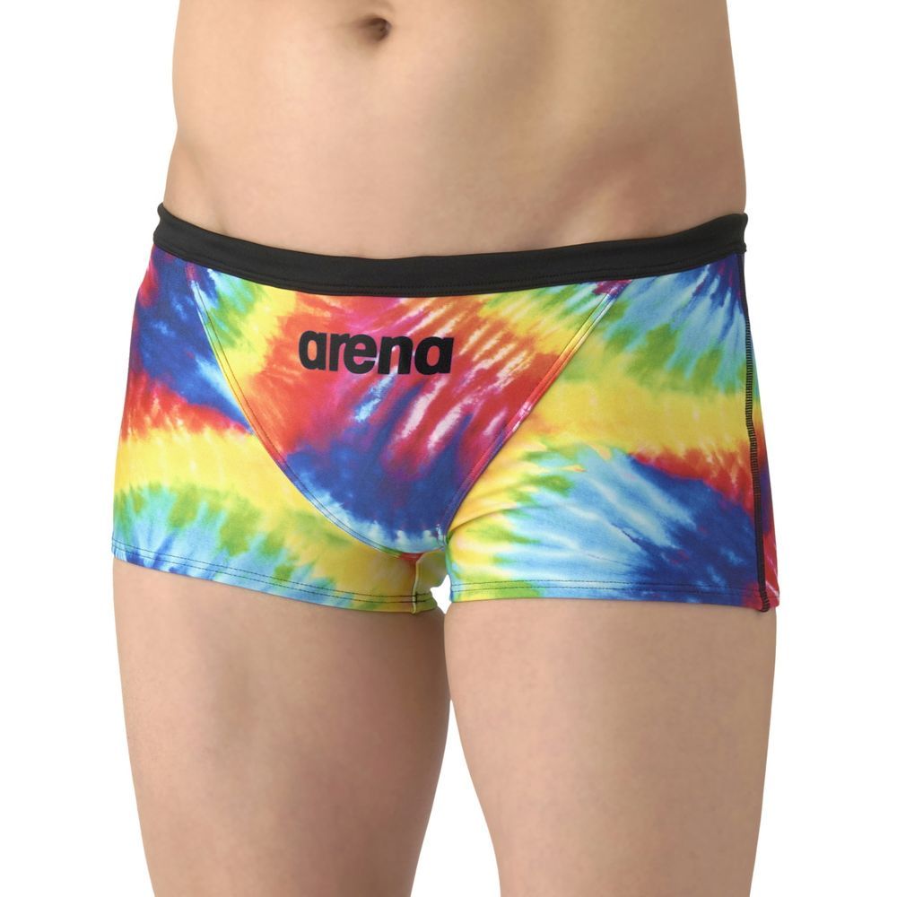 トレーニングカテゴリー「TOUGHSUITシリーズ」 大会に向けて練習を重ねる頻度が高いスイマーにオススメの練習用水着。 環境に配慮したリサイクルポリエステル素材でフィット感強めの「タフスキンT2E」を使用 塩素に強く長持ち。 アドバイザリー契約を締結した選手たちと共にデザインを作成した「チームアリーナコレクション」。 今回のチームアリーナのテーマは、「晴れ渡る未来へ」 ブランドのシーズンテーマである「天気」と連動。厳しい練習という雨の先に晴れ渡る空と虹のような未来をイメージし、選手たちの想いを込めたデザイン。空や虹を表現したタイダイ柄と海と空のグラデーション柄の2種類を展開。 村佐達也選手、水沼尚輝選手、柳本幸之介選手、寺門弦輝選手着用。前後に黒の裏地付き ショートレッグタイプ