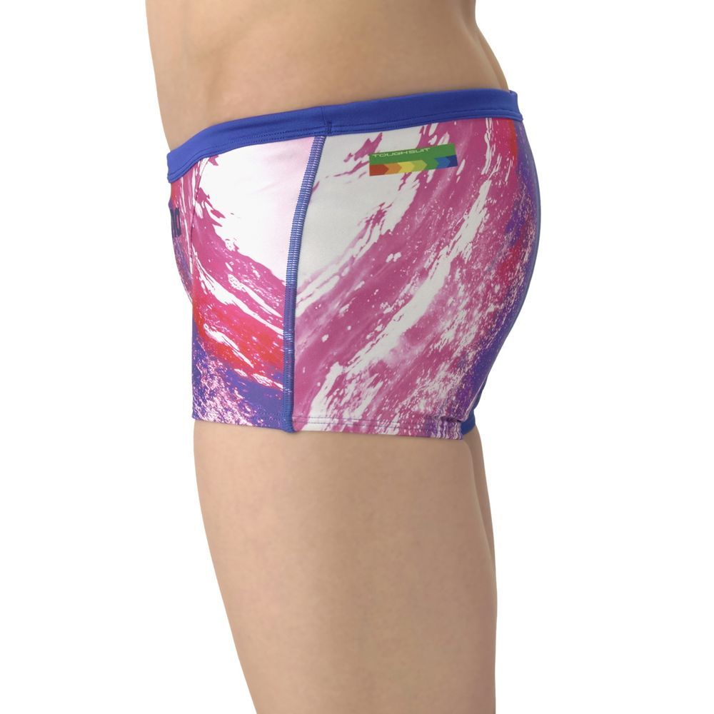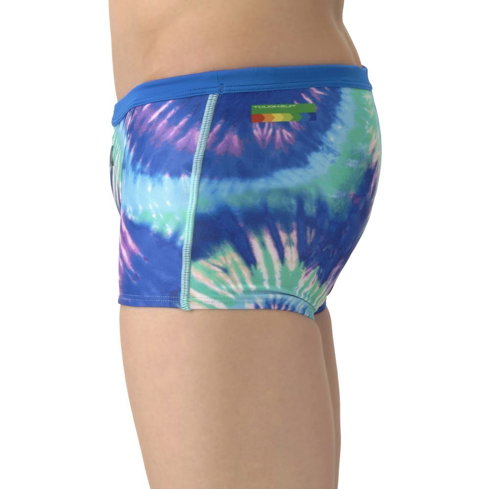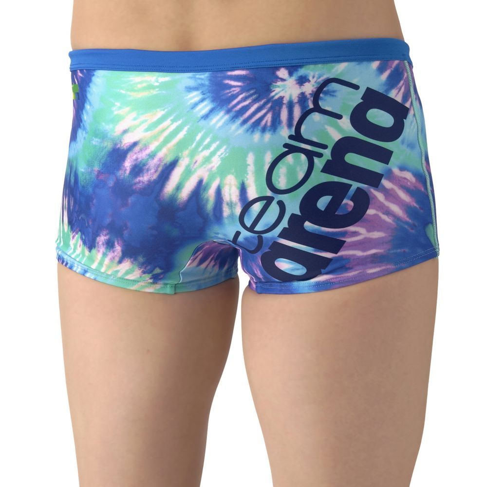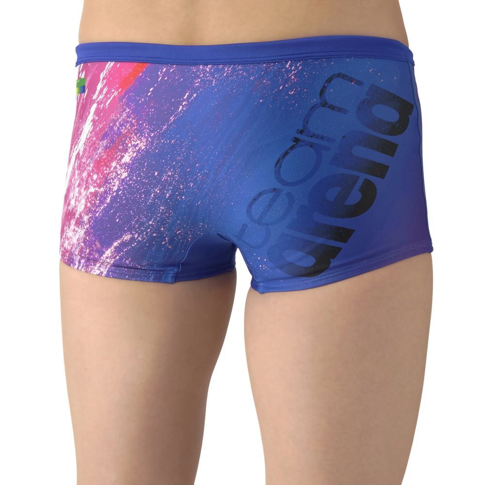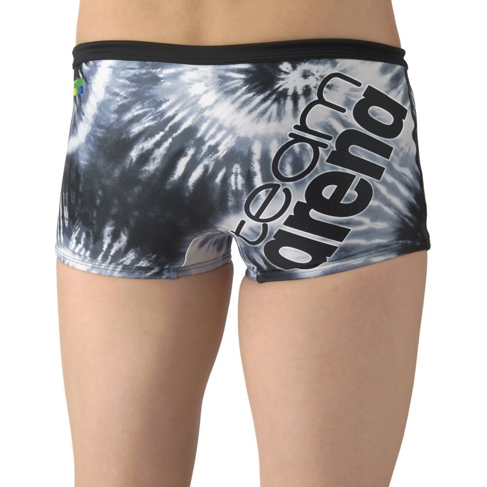 トレーニングカテゴリー「TOUGHSUITシリーズ」 大会に向けて練習を重ねる頻度が高いスイマーにオススメの練習用水着。 環境に配慮したリサイクルポリエステル素材でフィット感強めの「タフスキンT2E」を使用 塩素に強く長持ち。 アドバイザリー契約を締結した選手たちと共にデザインを作成した「チームアリーナコレクション」。 今回のチームアリーナのテーマは、「晴れ渡る未来へ」 ブランドのシーズンテーマである「天気」と連動。厳しい練習という雨の先に晴れ渡る空と虹のような未来をイメージし、選手たちの想いを込めたデザイン。空や虹を表現したタイダイ柄と海と空のグラデーション柄の2種類を展開。 村佐達也選手、水沼尚輝選手、柳本幸之介選手、寺門弦輝選手着用。前後に黒の裏地付き ショートレッグタイプ