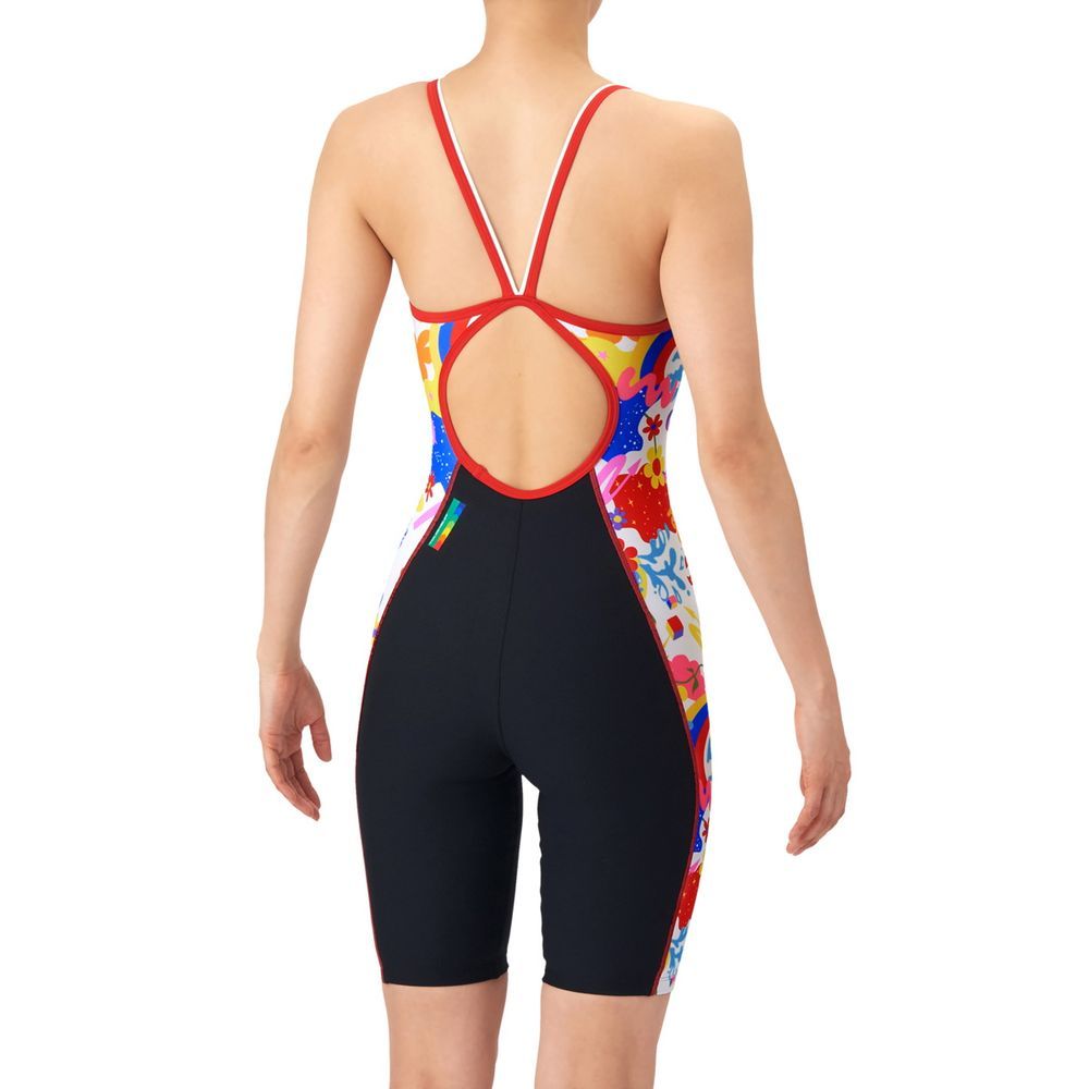 トレーニングカテゴリー「TOUGHSUITシリーズ」 大会に向けて練習を重ねる頻度が高いスイマーにオススメの練習用水着 環境に配慮したリサイクルポリエステル素材「タフスキンEP」を使用し塩素に強く長持ち シーズンテーマのVIBRANT WEATHERのデザインの柄切替えハーフレッグタイプ水着 風、雨、雷、太陽などの空のモチーフを使い天気の躍動感をポップに鮮やかな色彩で表現。 前当てと脇切替え部分に黒の裏地付き *この商品は縫製上、一点一点プリント柄の見え方に違いが生じますので予めご了承ください