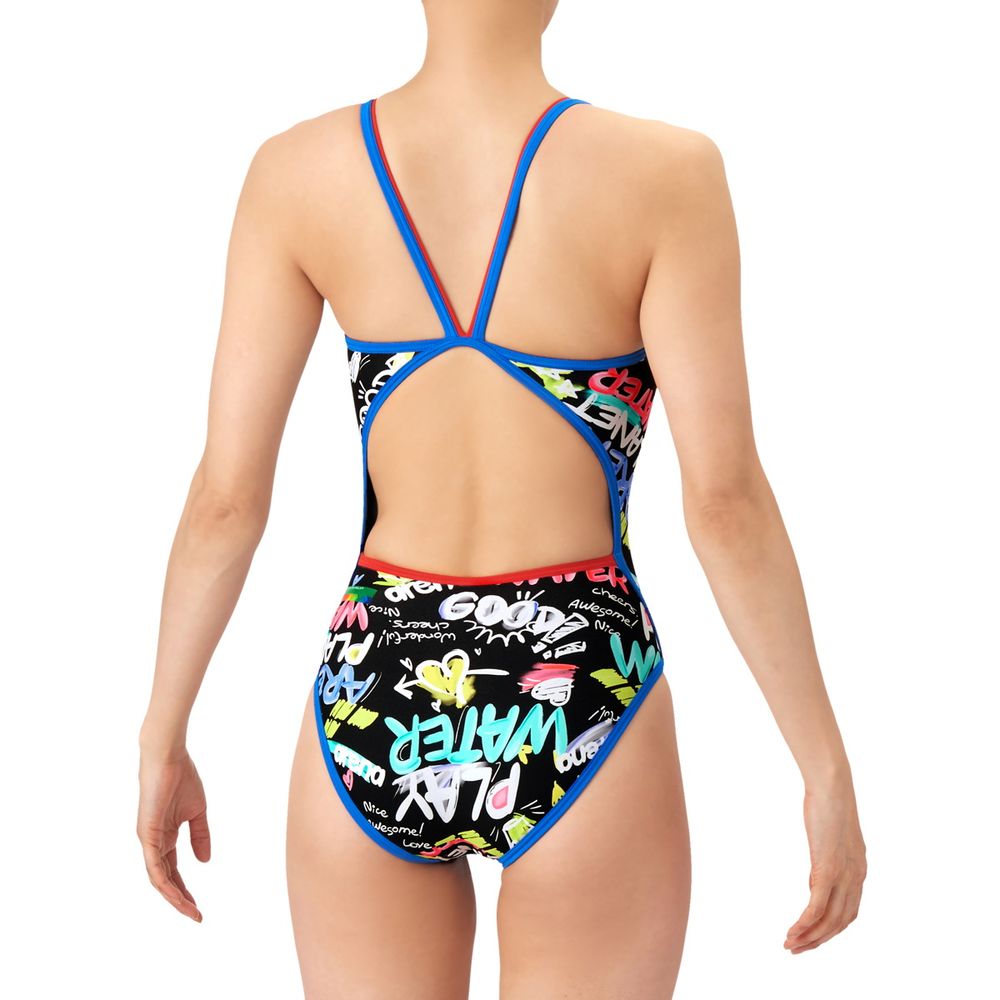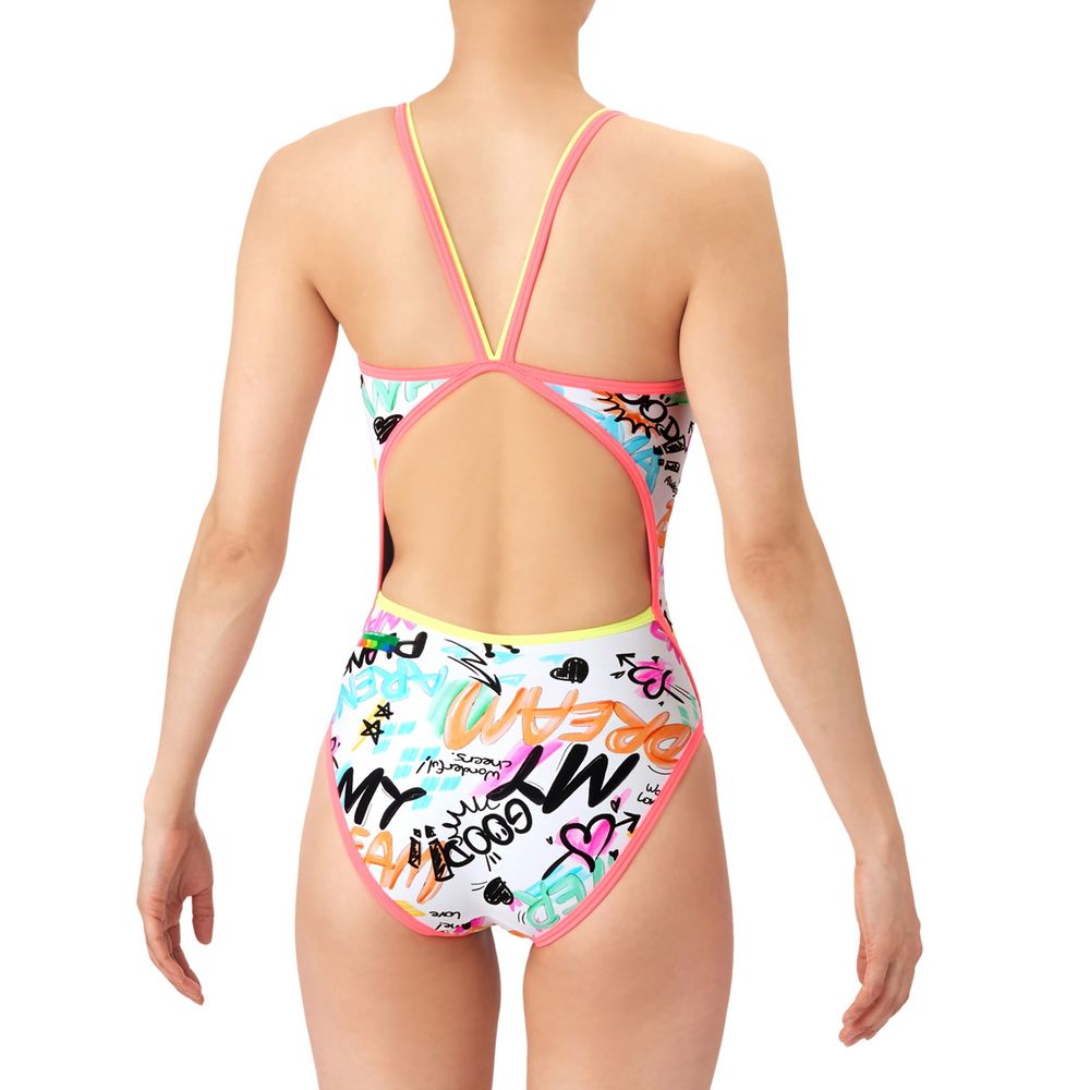 トレーニングカテゴリー「TOUGHSUITシリーズ」 ジュニア用サイズ 大会に向けて練習を重ねる頻度が高いスイマーにオススメの練習用水着 環境に配慮したリサイクルポリエステル素材「タフスキンEP」を使用し塩素に強く長持ち ポップな文字表現で鮮やかなデザイン 落書きをしたノートのような手書きタッチのロゴや、水彩ペンで描いたような立体感のあるグラフィックが特徴 みんなの夢を描いた寄せ書きのような、温かみと楽しさあふれるデザイン 前身頃、後身頃に黒の裏地付き ワンピースタイプ *この商品は縫製上、一点一点プリント柄の見え方に違いが生じますので予めご了承ください。