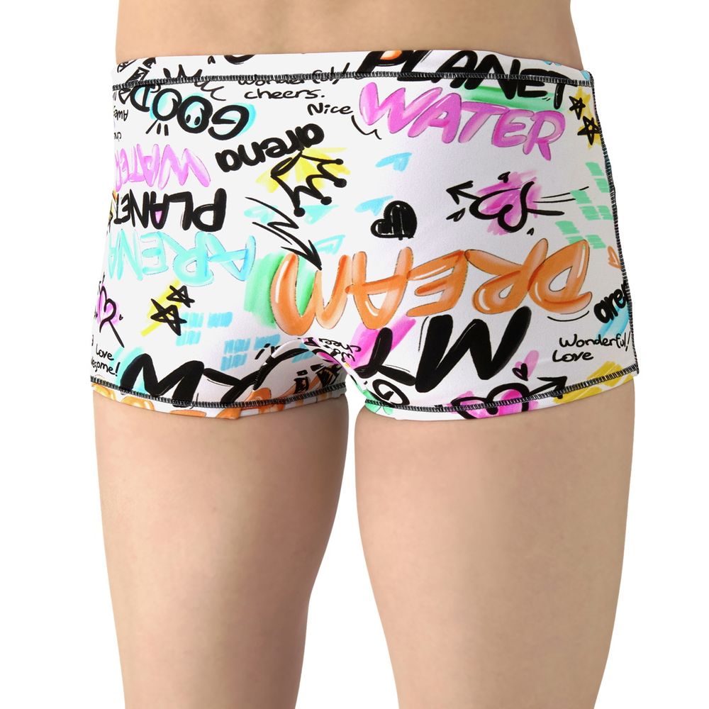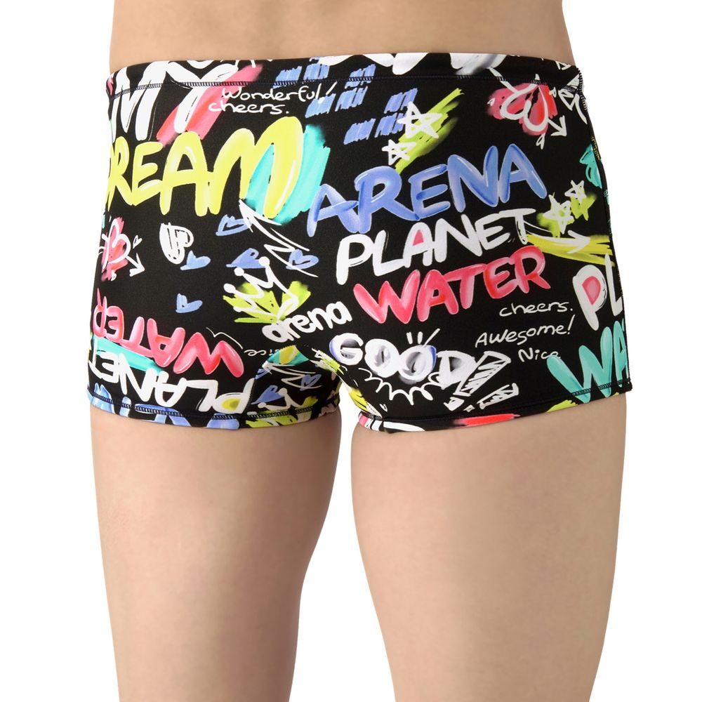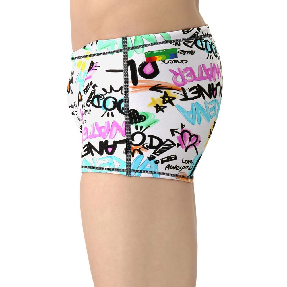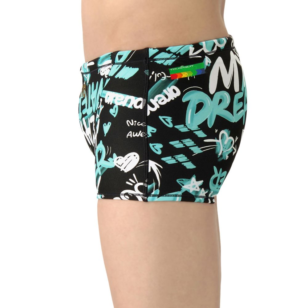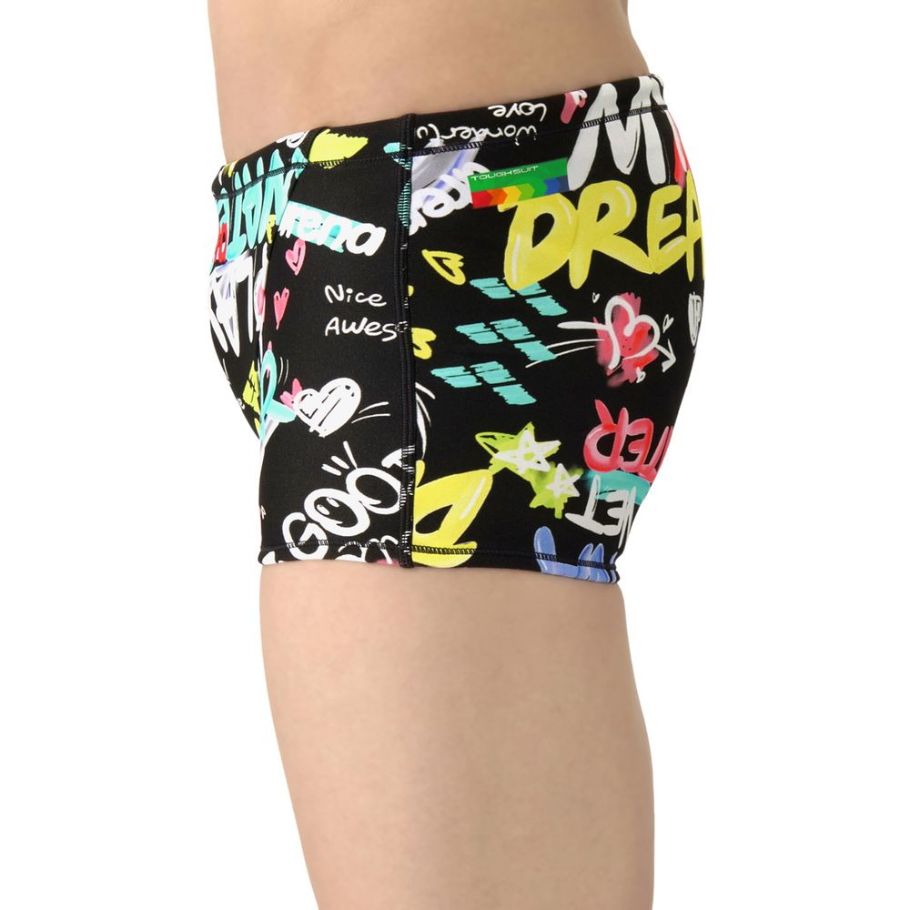 トレーニングカテゴリー「TOUGHSUITシリーズ」 ジュニア用サイズ 大会に向けて練習を重ねる頻度が高いスイマーにオススメの練習用水着 環境に配慮したリサイクルポリエステル素材「タフスキンEP」を使用し塩素に強く長持ち ポップな文字表現で鮮やかなデザイン 落書きをしたノートのような手書きタッチのロゴや、水彩ペンで描いたような立体感のあるグラフィックが特徴 みんなの夢を描いた寄せ書きのような、温かみと楽しさあふれるデザイン 前身頃、後身頃に黒の裏地付き ショートレッグタイプ *この商品は縫製上、一点一点プリント柄の見え方に違いが生じますので予めご了承ください。