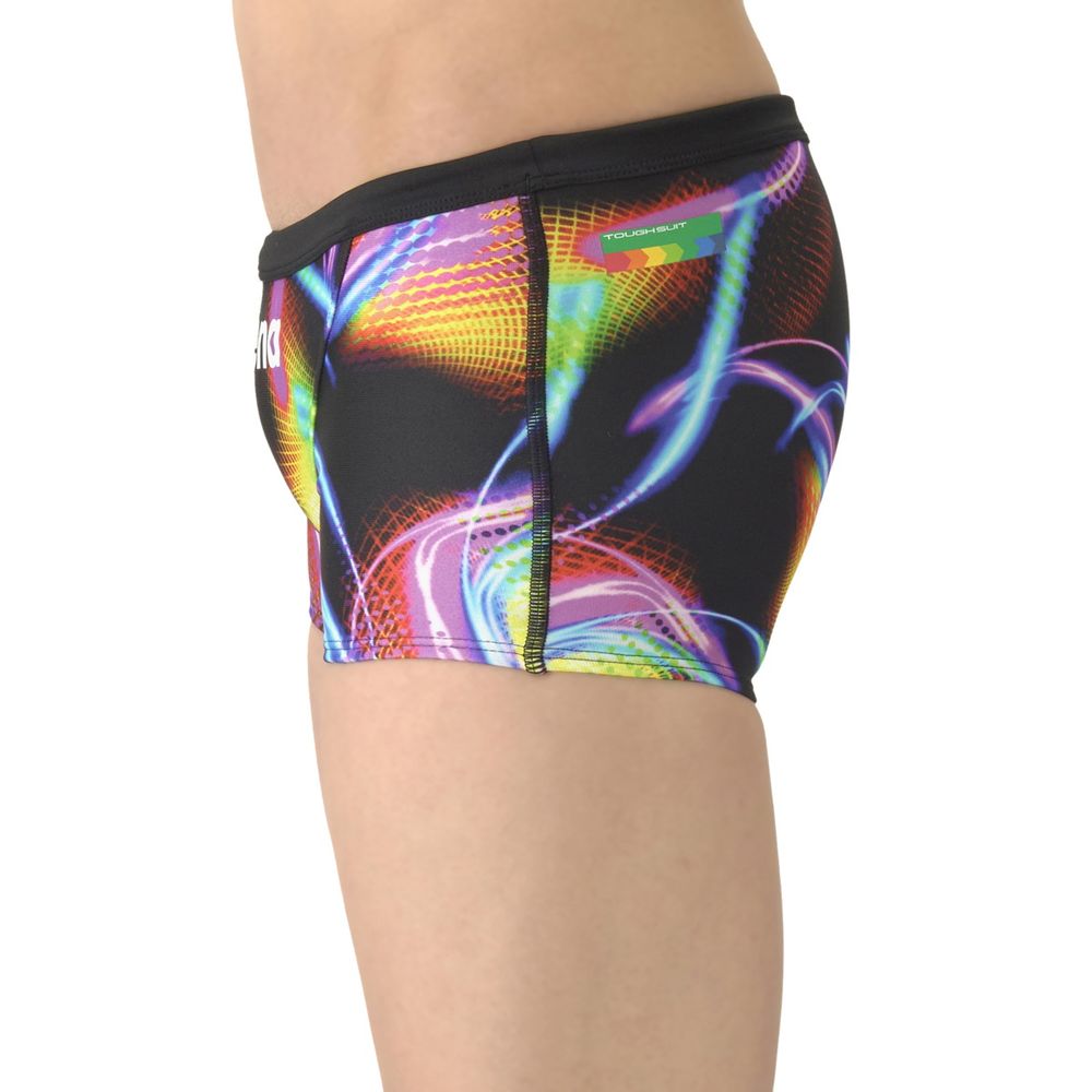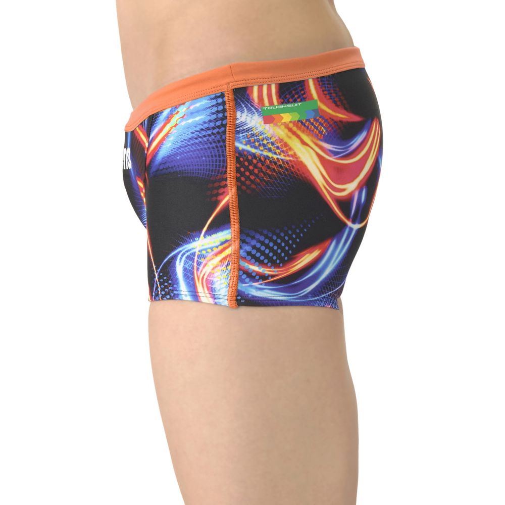 トレーニングカテゴリー「TOUGHSUITシリーズ」 大会に向けて練習を重ねる頻度が高いスイマーにオススメの練習用水着 環境に配慮したリサイクルポリエステル素材でフィット感強めの「タフスキンT2E」を使用し塩素に強く長持ち 光が動きに沿って流れるようなデザインでスピード感のあるグラフィック 前身頃、後身頃に黒の裏地付き ショートレッグタイプ *この商品は縫製上、一点一点プリント柄の見え方に違いが生じますので予めご了承ください。