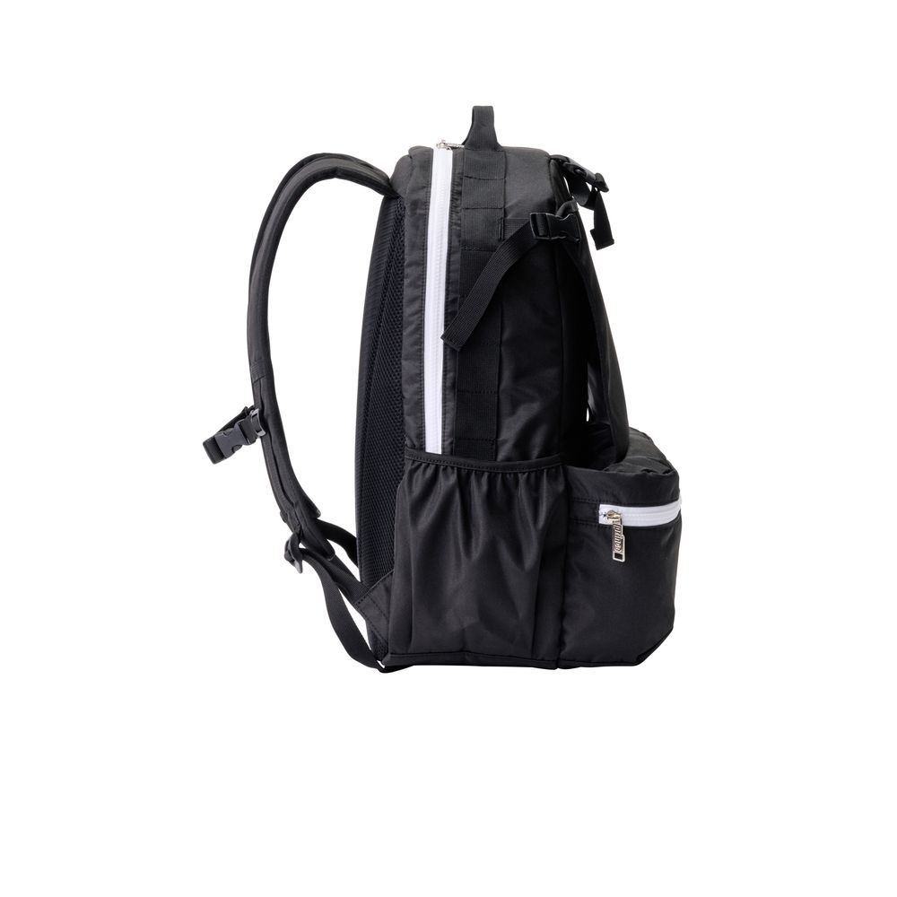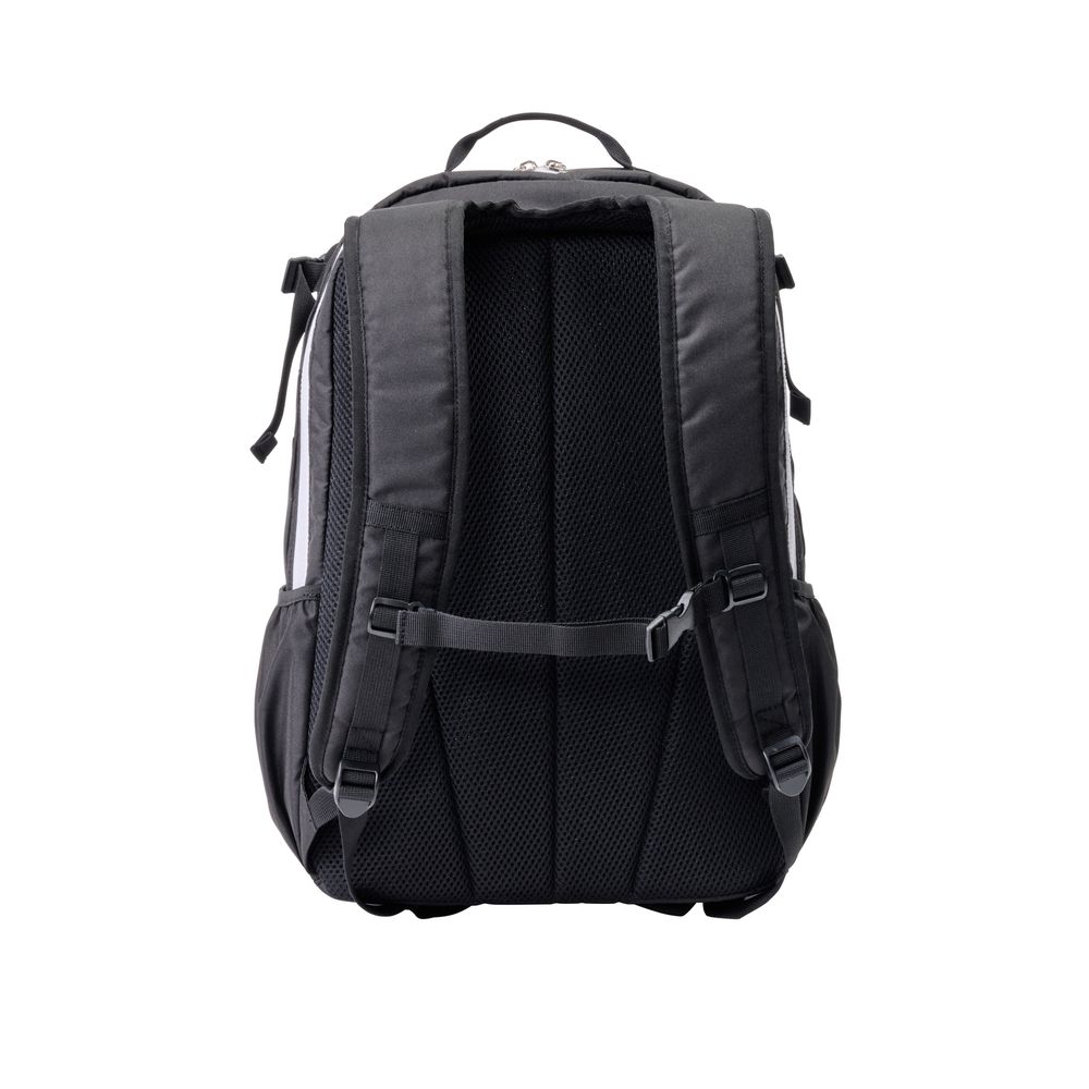 機能:ラケット収納スペース、フロントポケット、内側収納ポケット、ドリンクホルダーサイドポケット、一体型ショルダー、背面メッシュパッド、チェストベルト、ギアループ