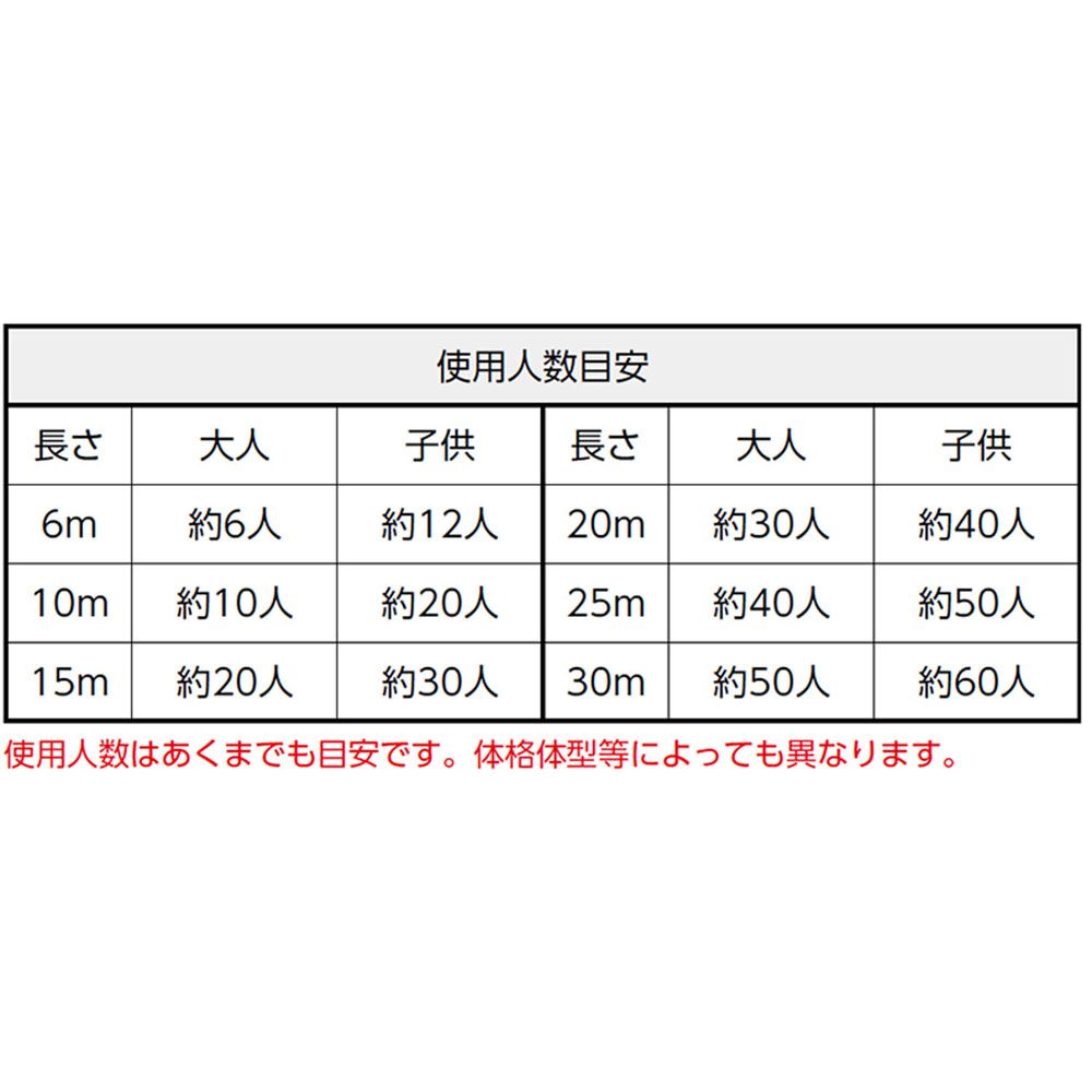 使用人数はあくまでも目安です。体格体型等によっても異なります。