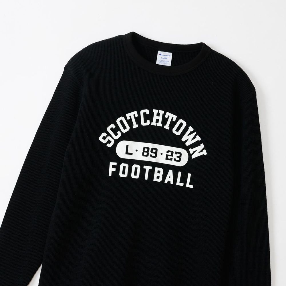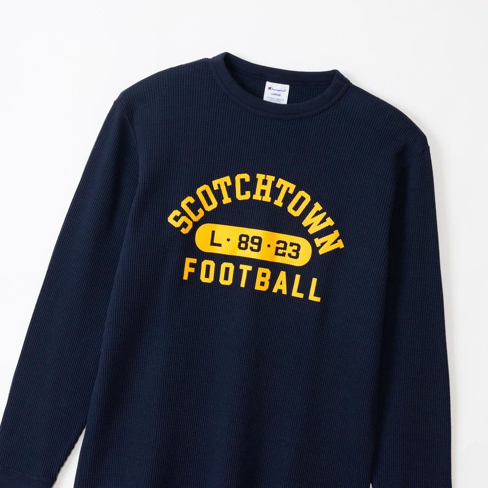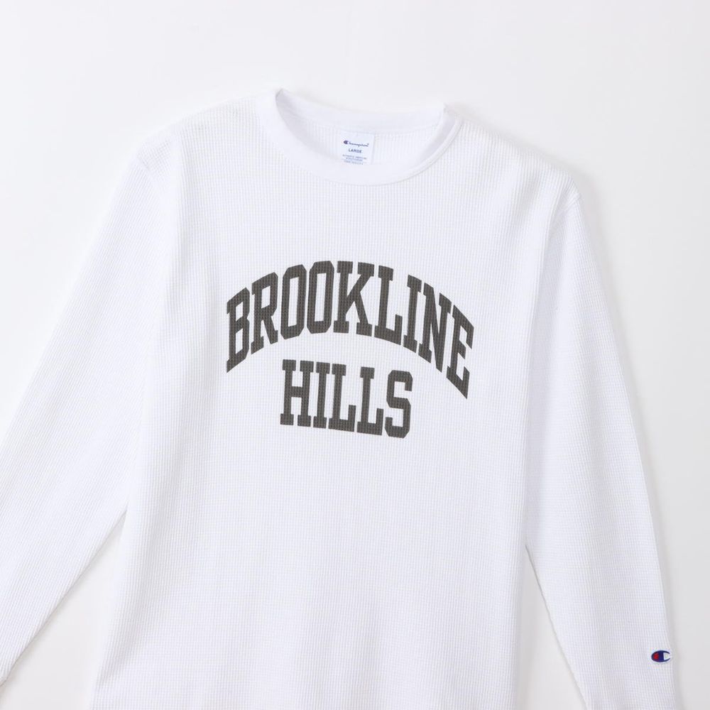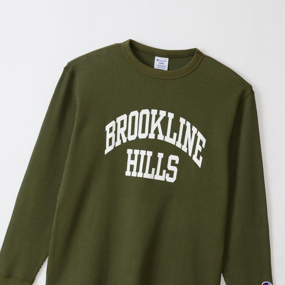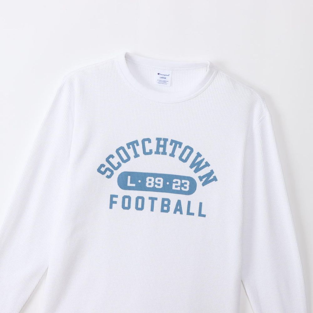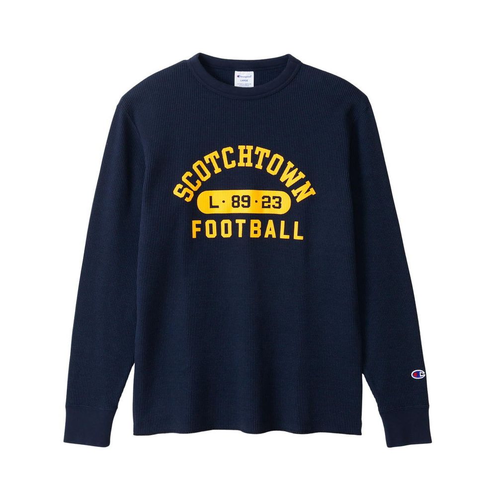 ●環境に配慮して生産されたサステナブルなアメリカ綿とリサイクルポリエステルをブレンドした、ワッフル素材のロングスリーブTシャツです。ポリエステル糸を芯としてその周りをコットンでカバーする特殊な糸を使用。肌触りの良いコットンの風合いを活かしつつ、コットン100%に比べて乾きやすく型くずれしにくいのが特長です。胸のプリントはChampion(R)(チャンピオン)ブランドと親和性の高いカレッジ風の書体をベースにしたもので、アーチ状、ストレート状の文字でカプセルナンバーを囲んだデザイン、アーチ状、ストレート状の文字を2段にレイアウトしたデザインの2タイプ(6種類)。ホワイトのボディには染み込みプリント、その他のカラーのボディにはラバープリントを使用しています。オーセンティック アメリカン アスレチックウェアのチャンピオンらしいバインダーネック仕様もポイント。製品洗い加工により、着用の当初から着慣れた風合いが味わえます。●FEATURES:・ Recycled Polyester ・ USA Grown Cotton ・ Garment Wash・ Collar : Binder